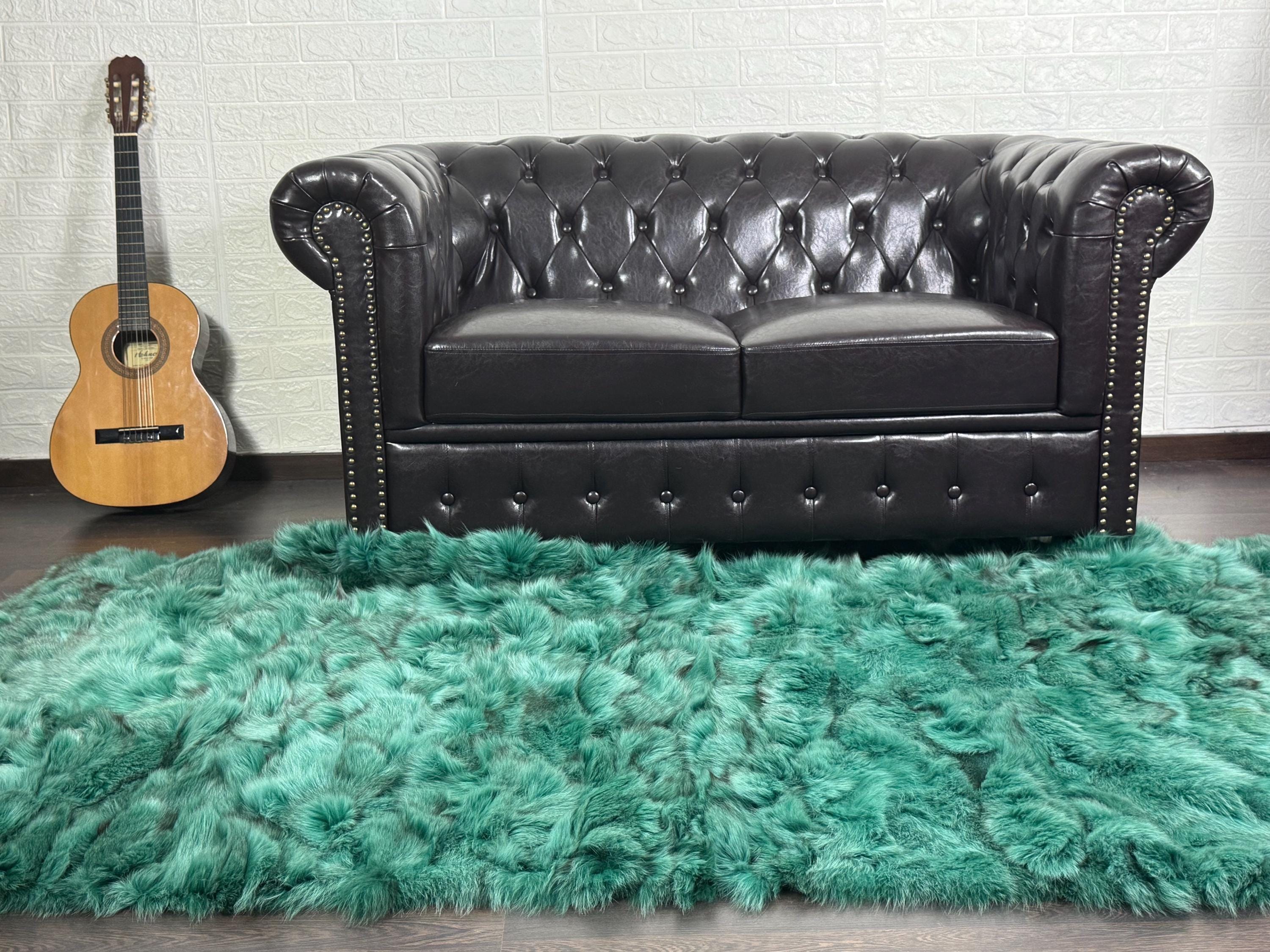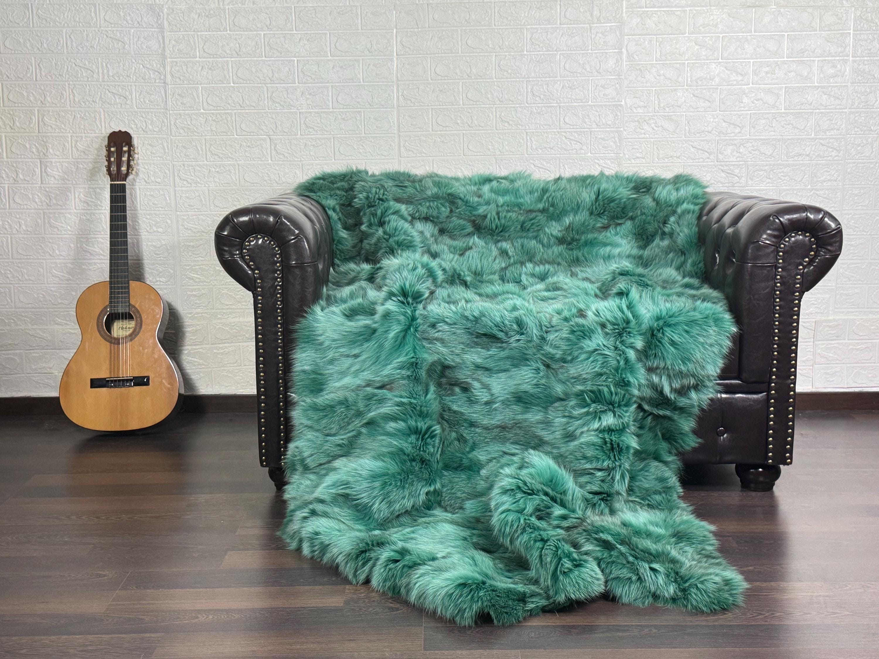 Transform your living space with a stunning handmade green fox fur throw blanket.