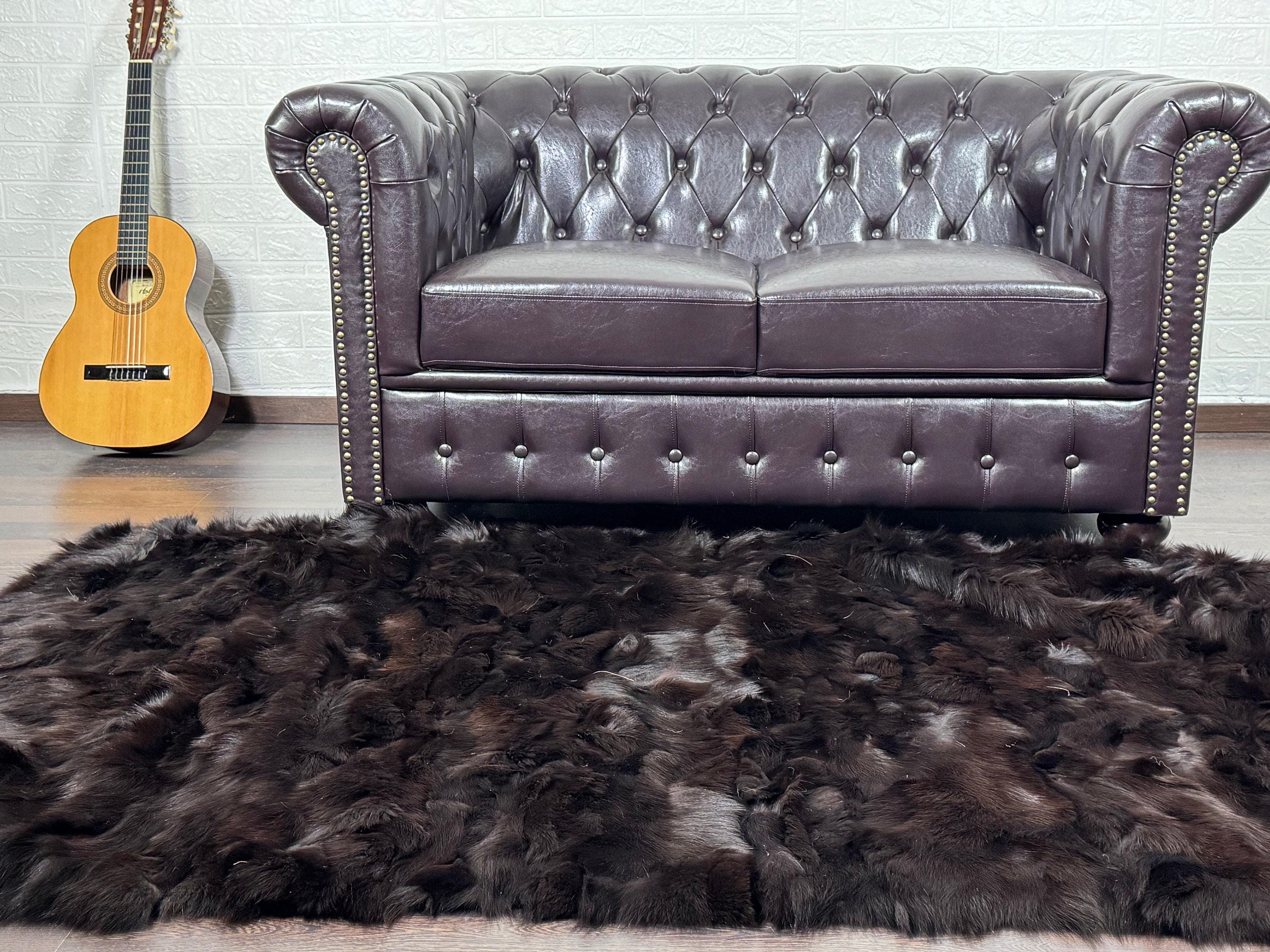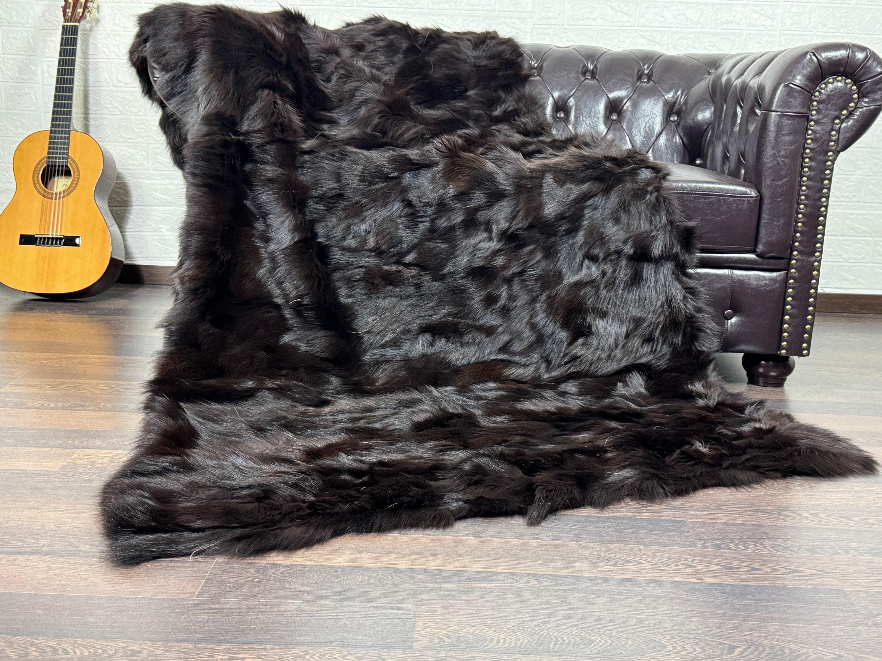 Transform your living space with a stunning handmade brown fox fur throw blanket.