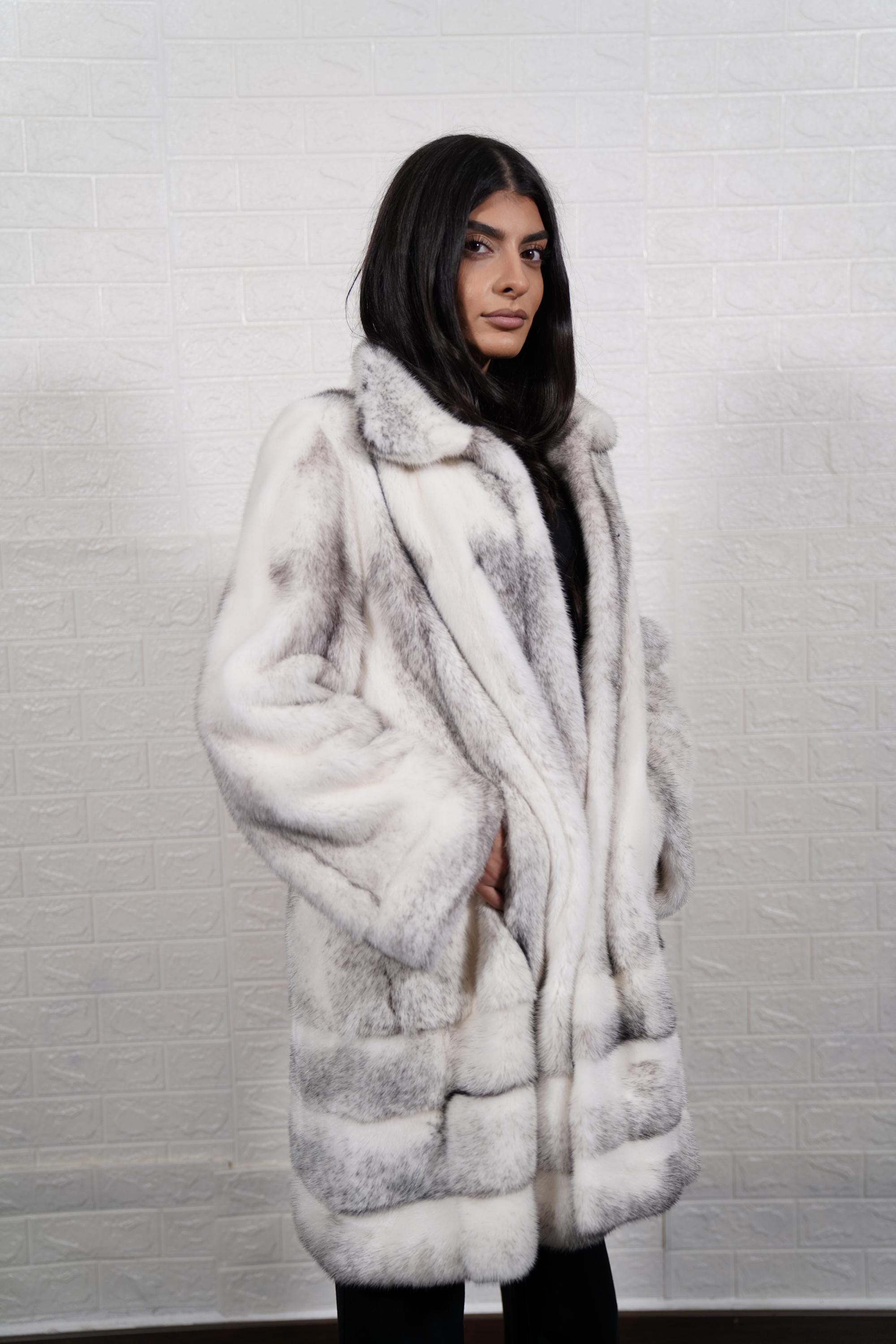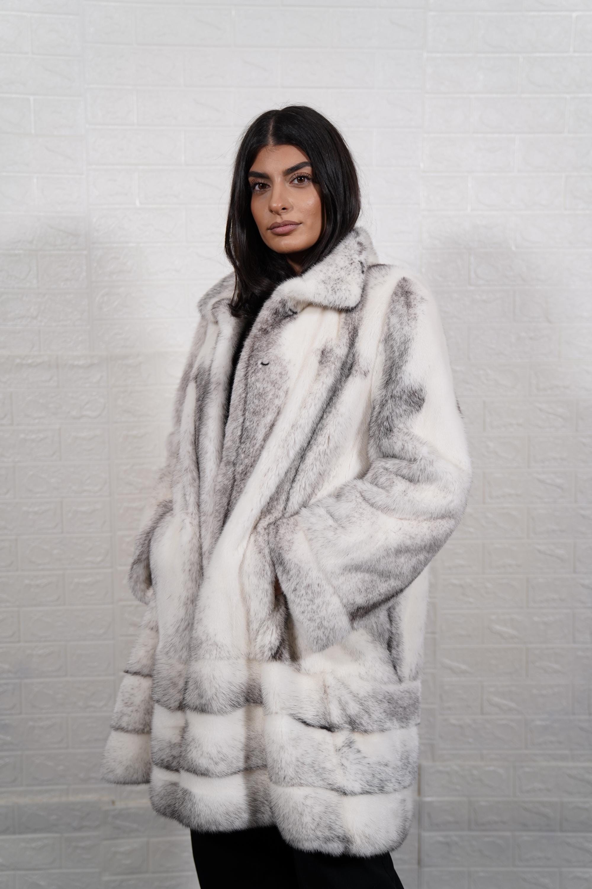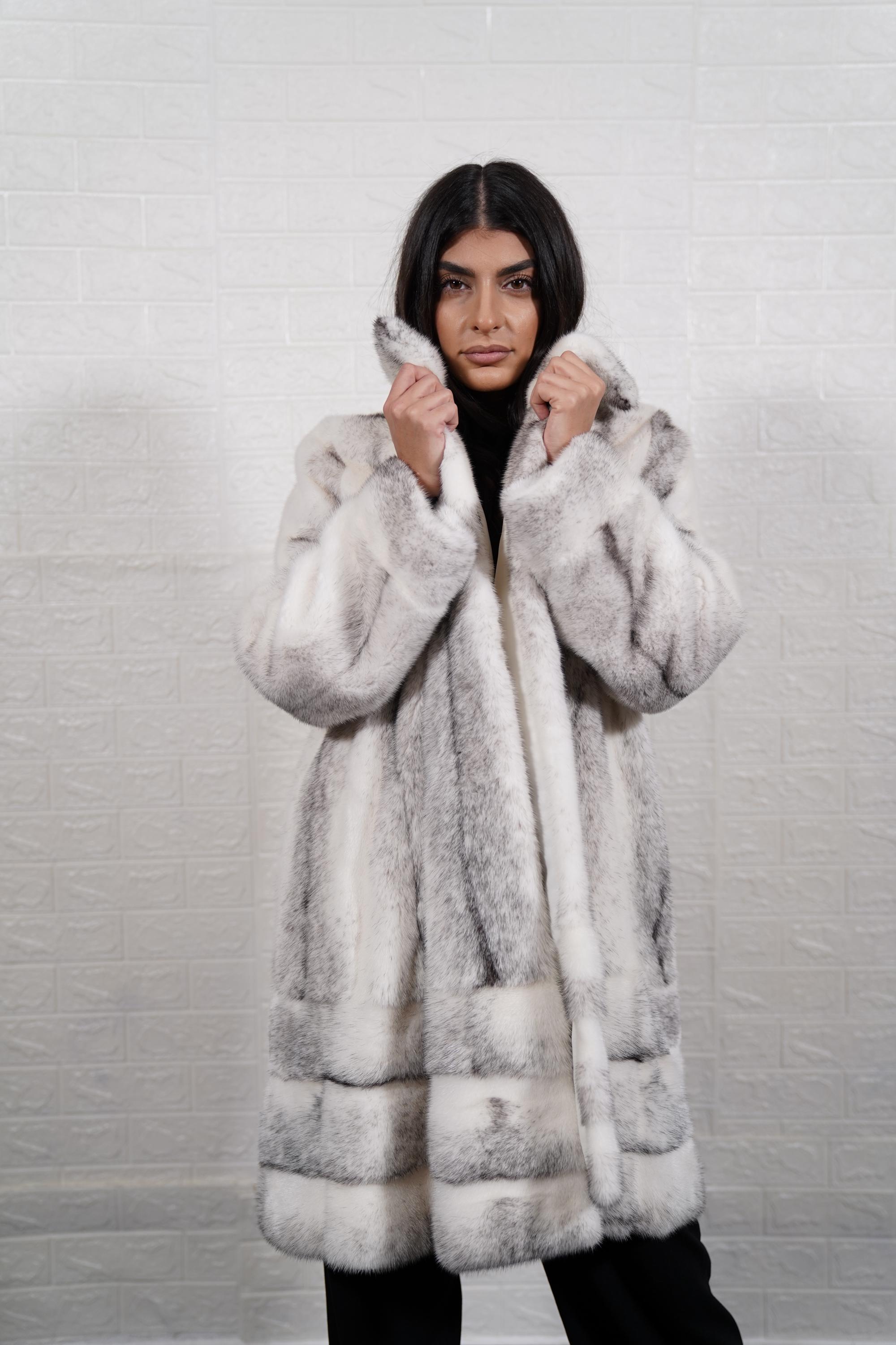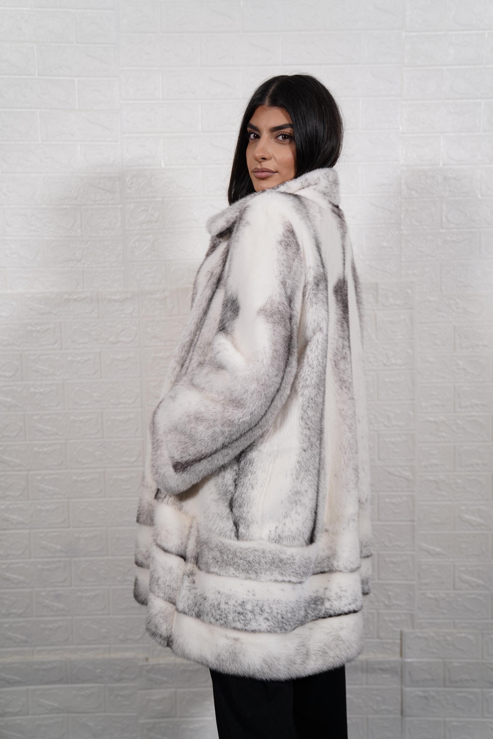 Bring timeless luxury into your wardrobe. Order your Natural Black Cross Mink Fur Coat today. ✨