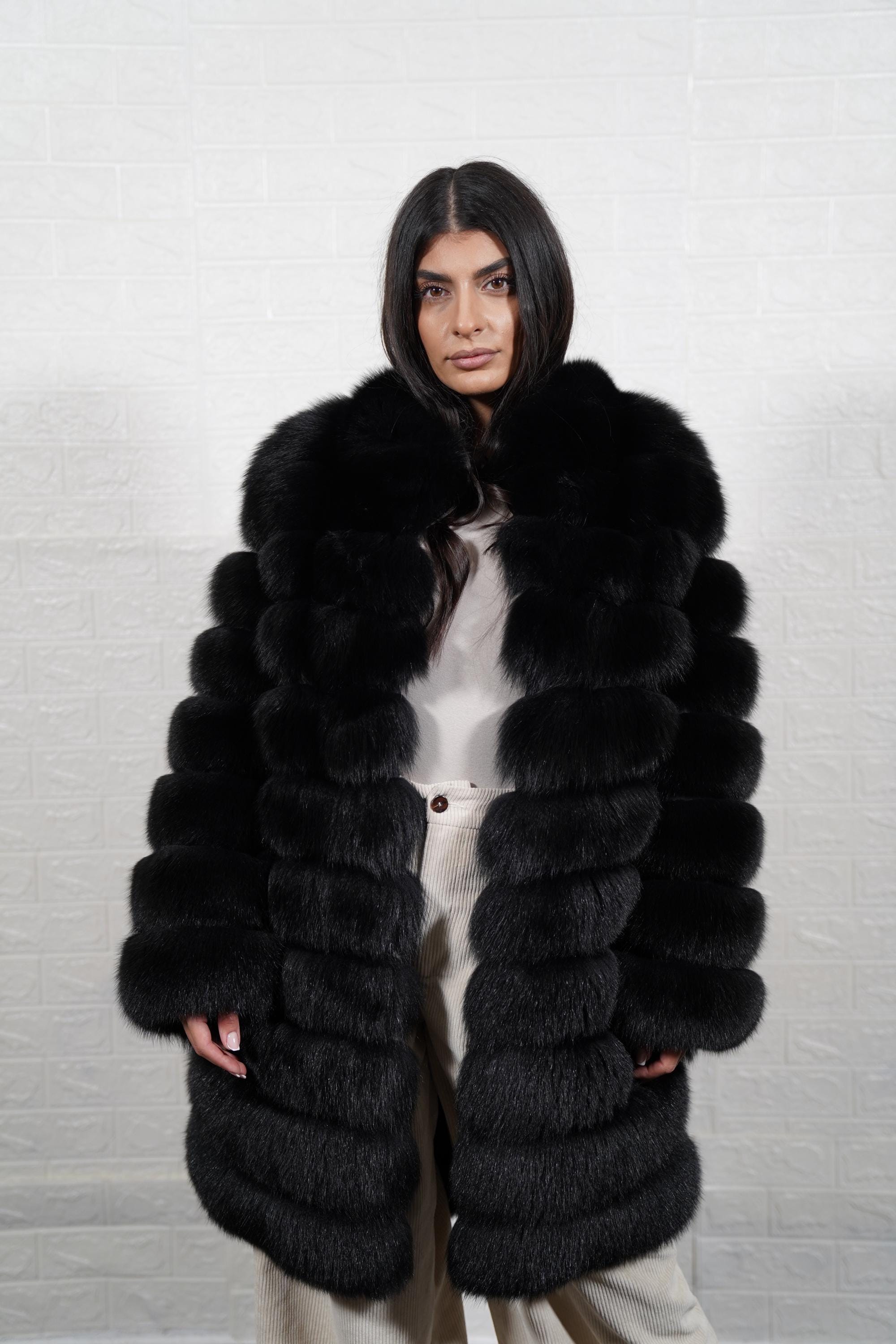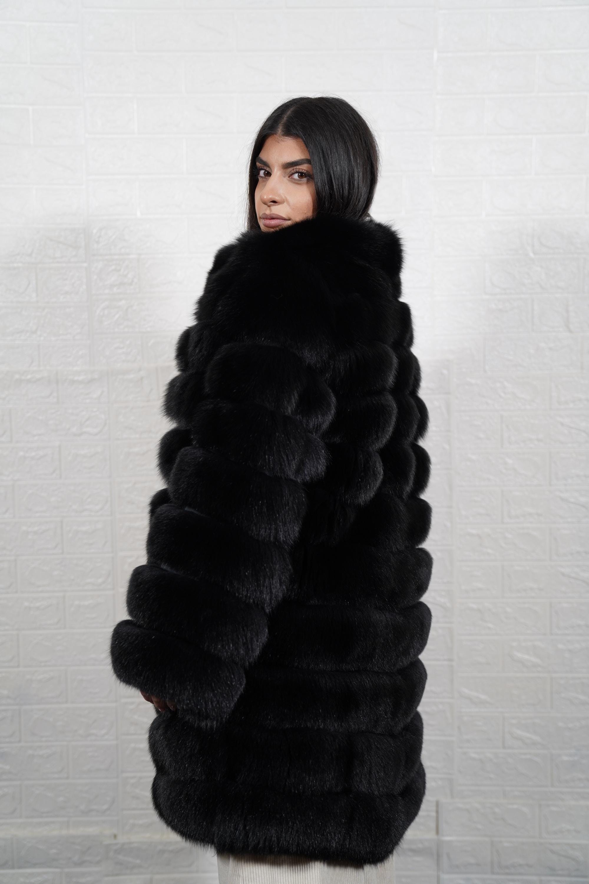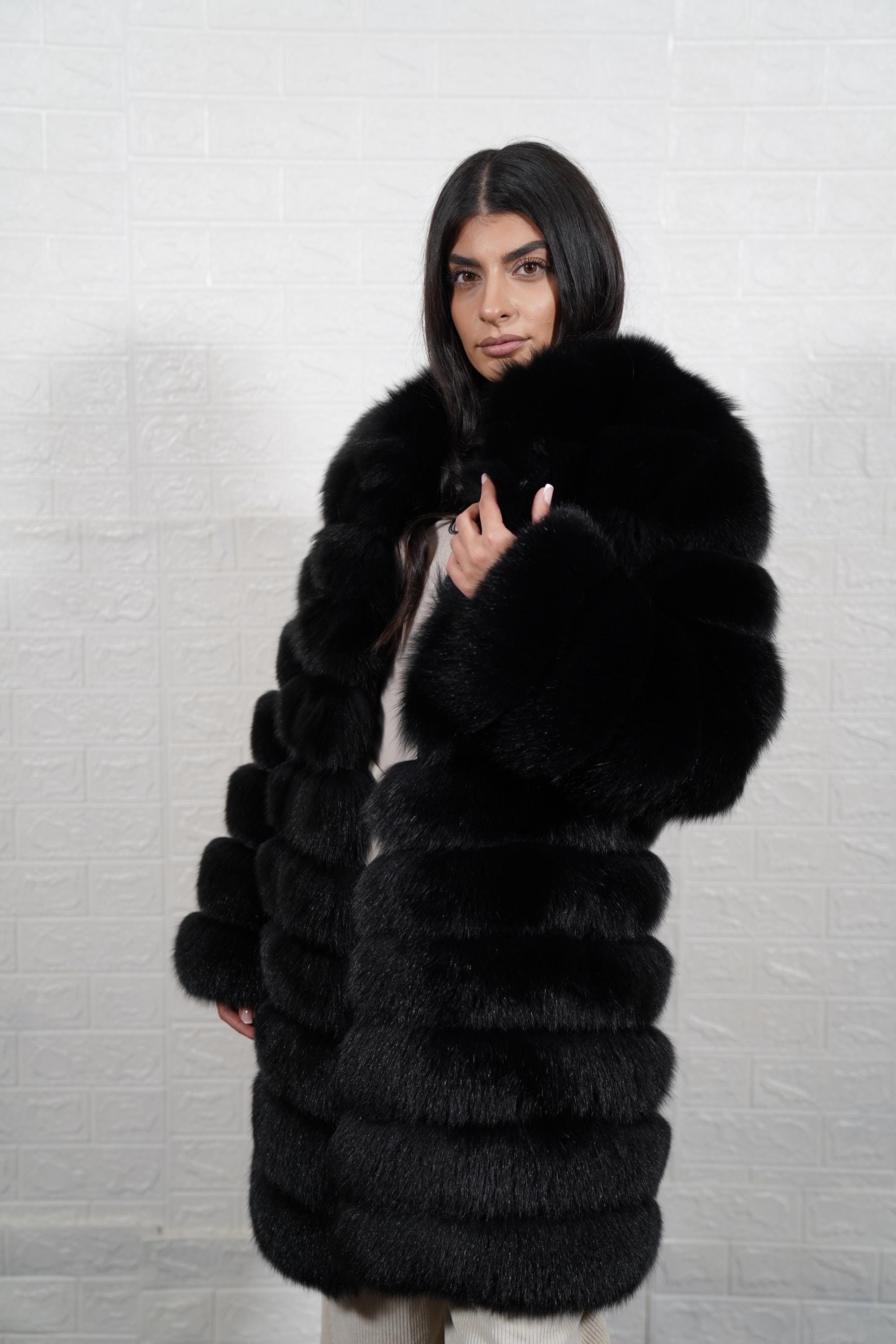 Bring timeless luxury into your wardrobe. Order your Black Fox Fur Overcoat today. ✨