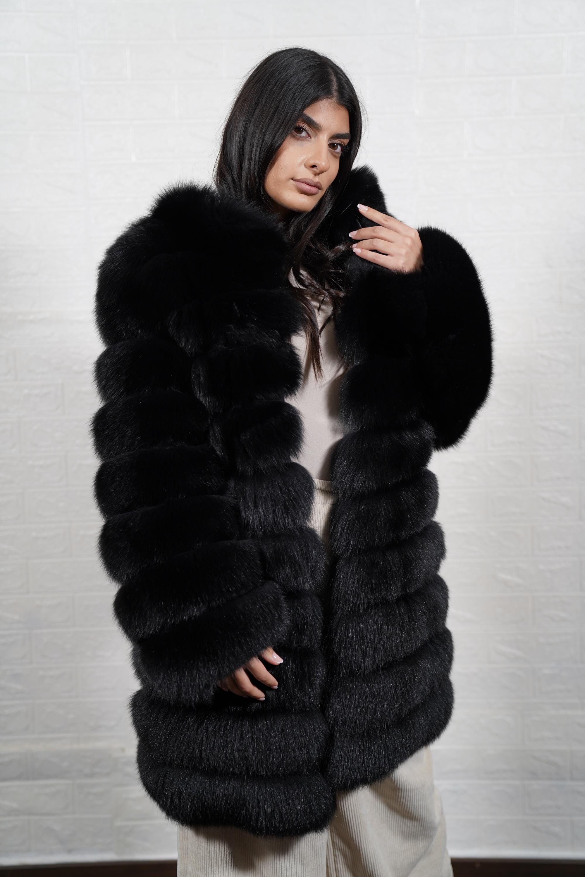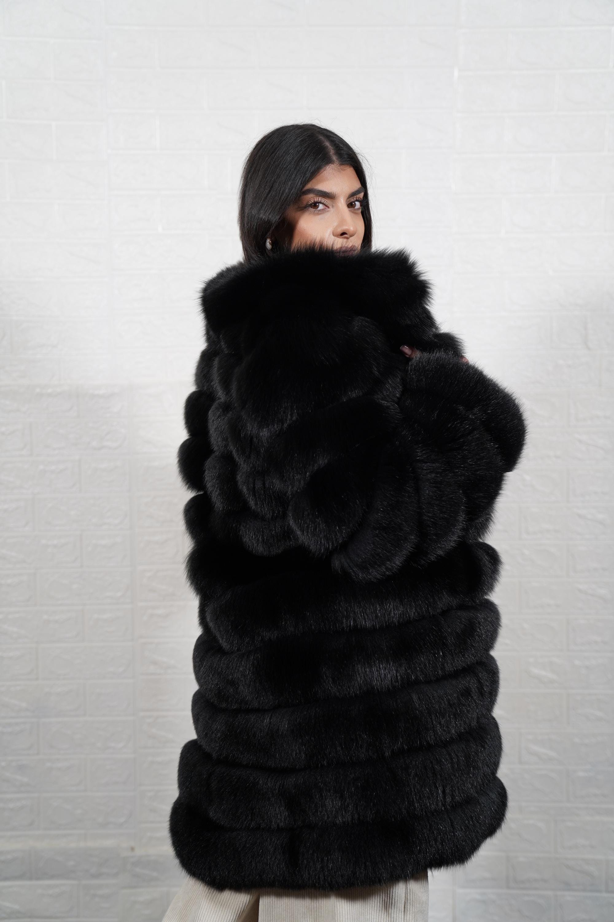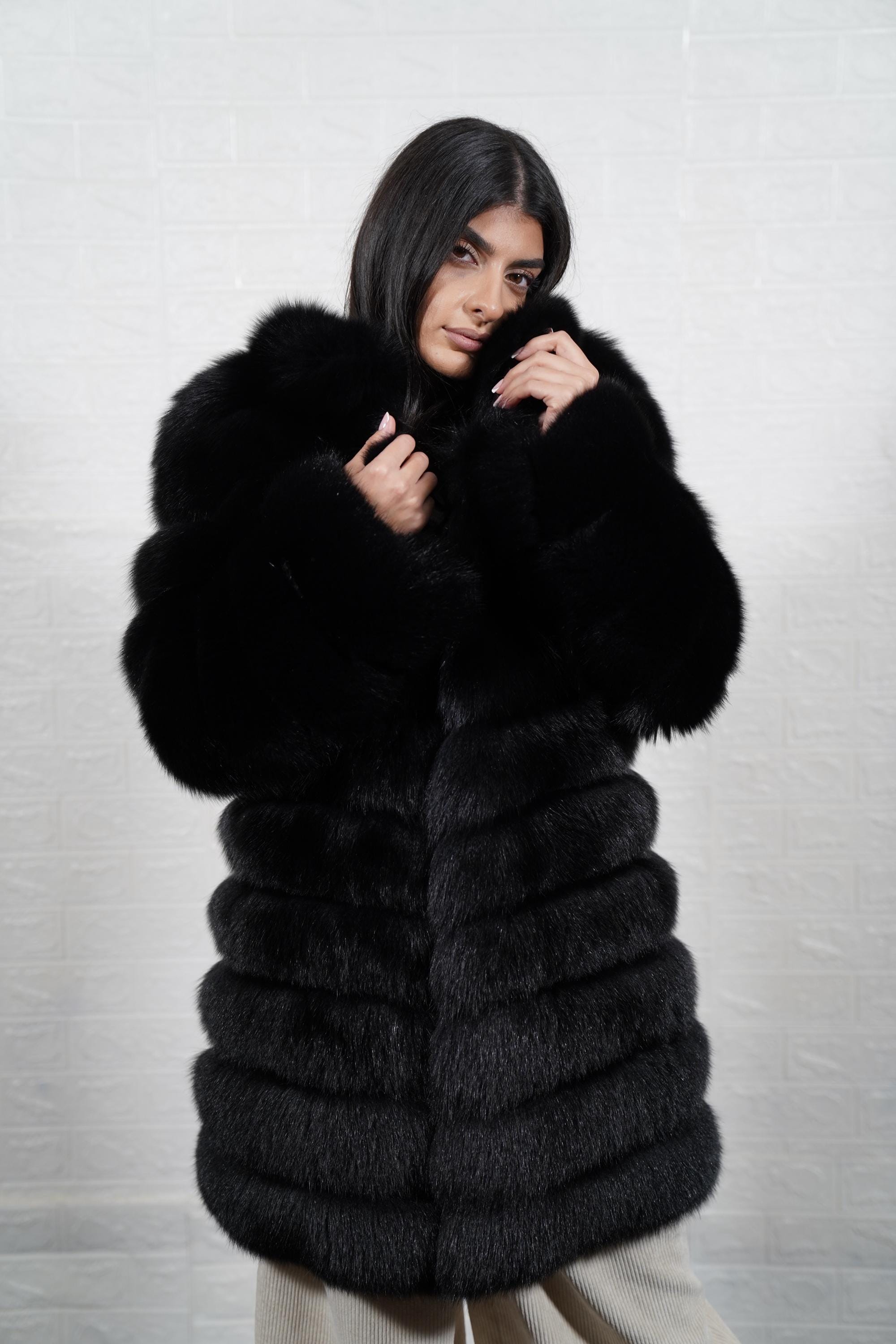 Bring timeless luxury into your wardrobe. Order your Black Fox Fur Overcoat today. ✨