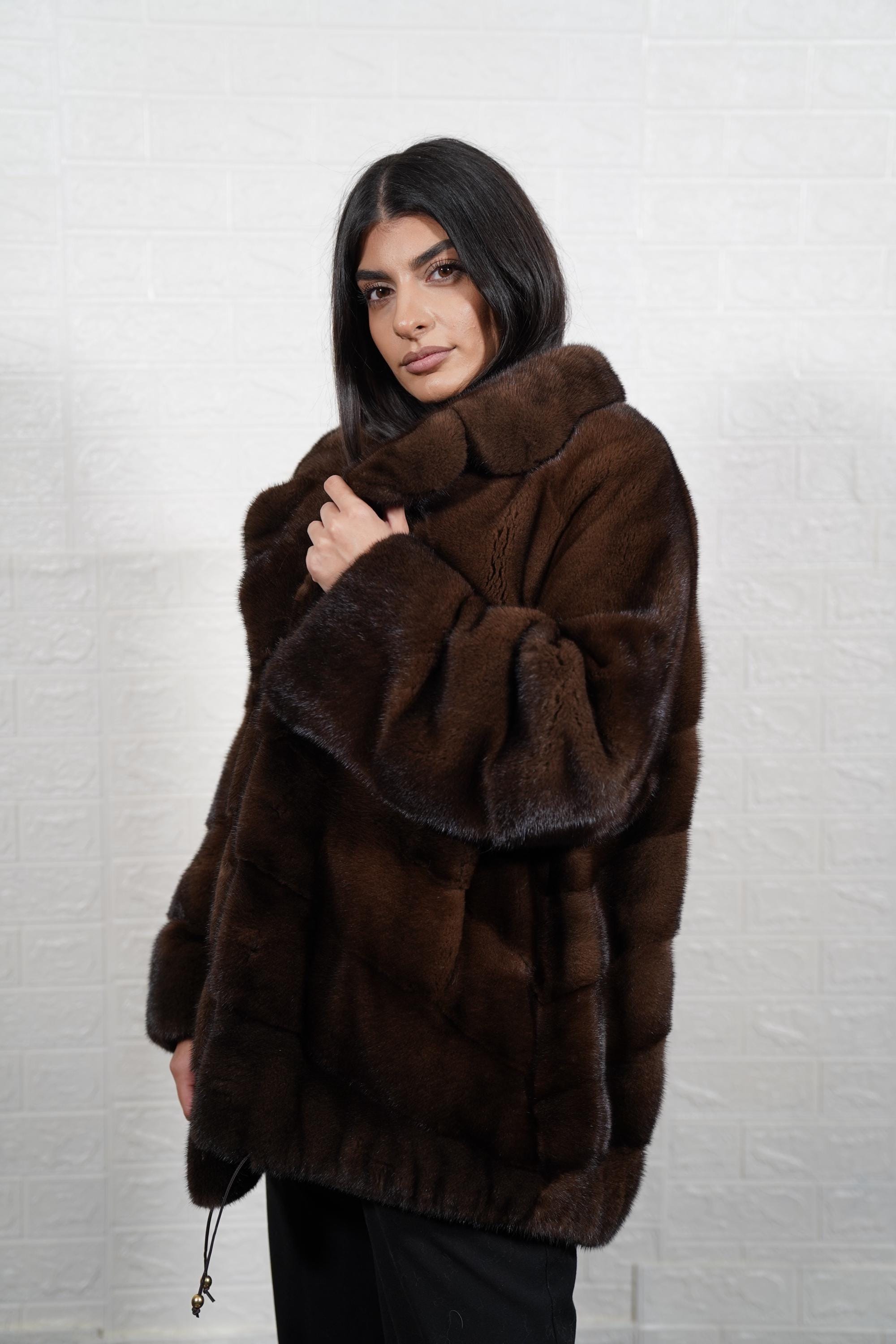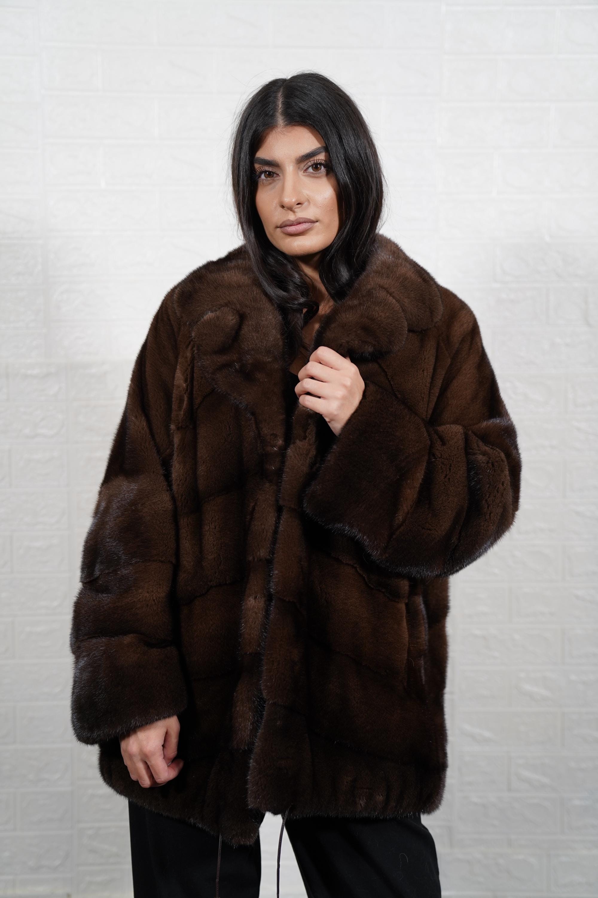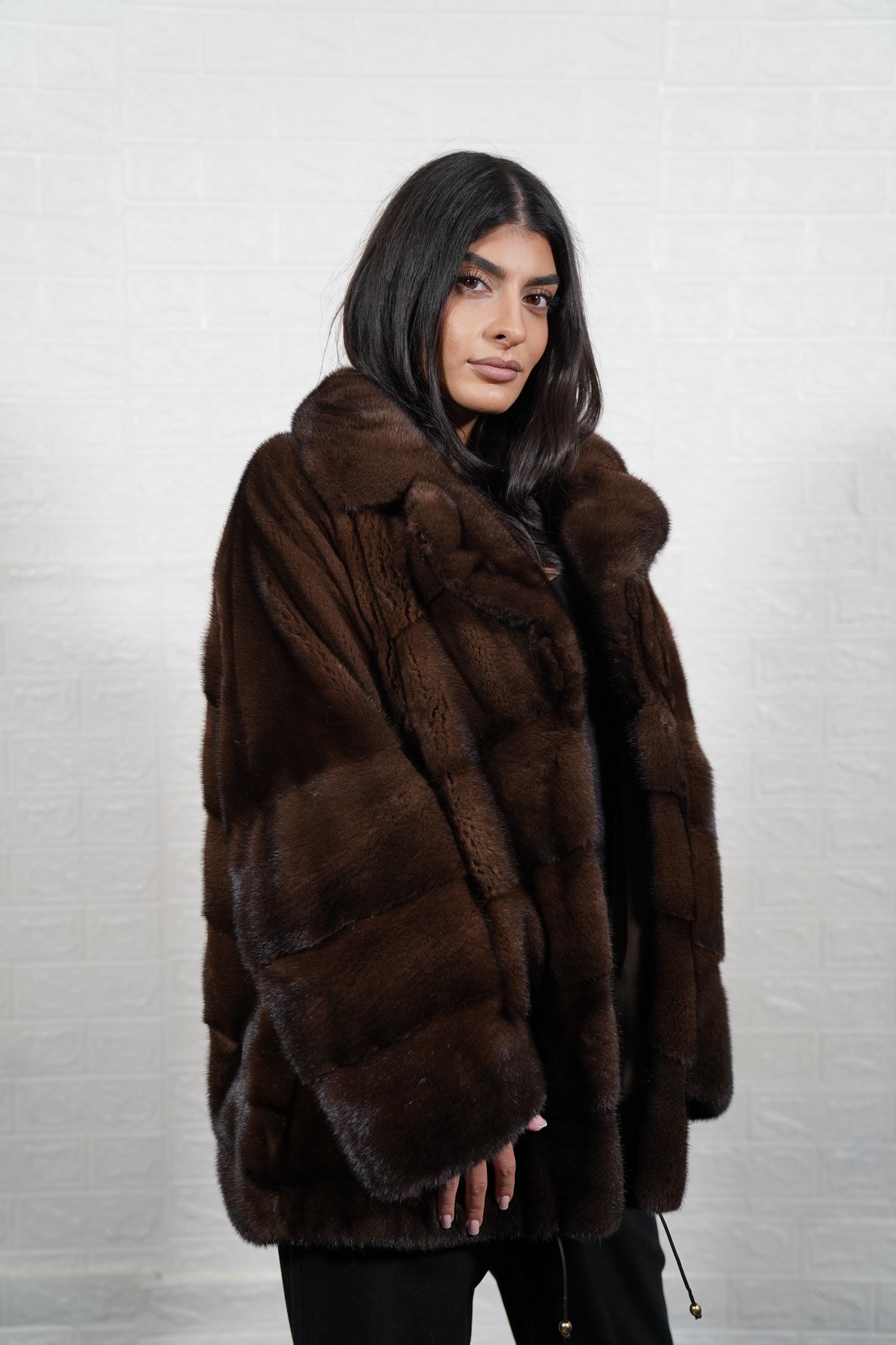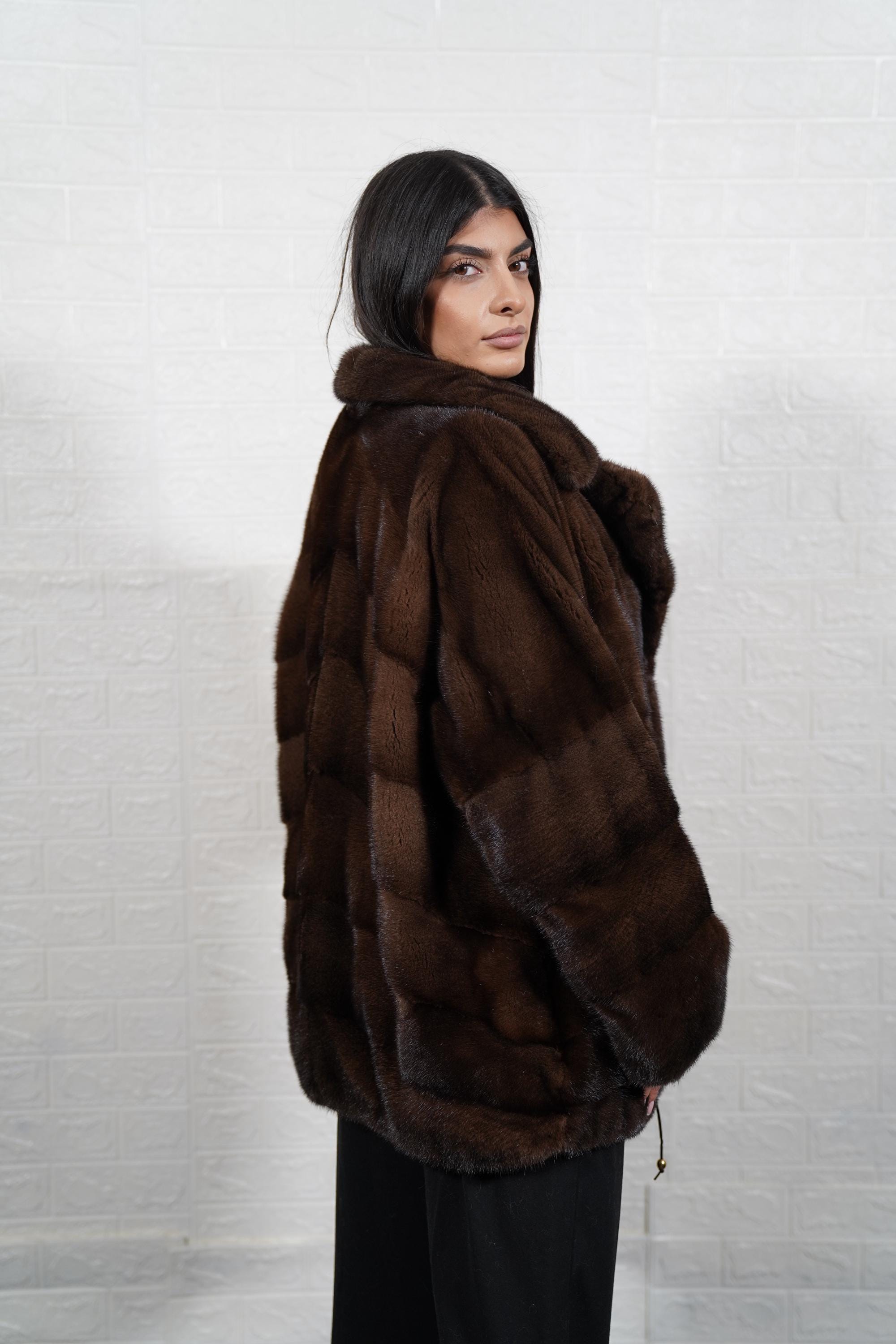 Bring timeless luxury into your wardrobe. Order your Brown Mink Fur Jacket Coat today. ✨