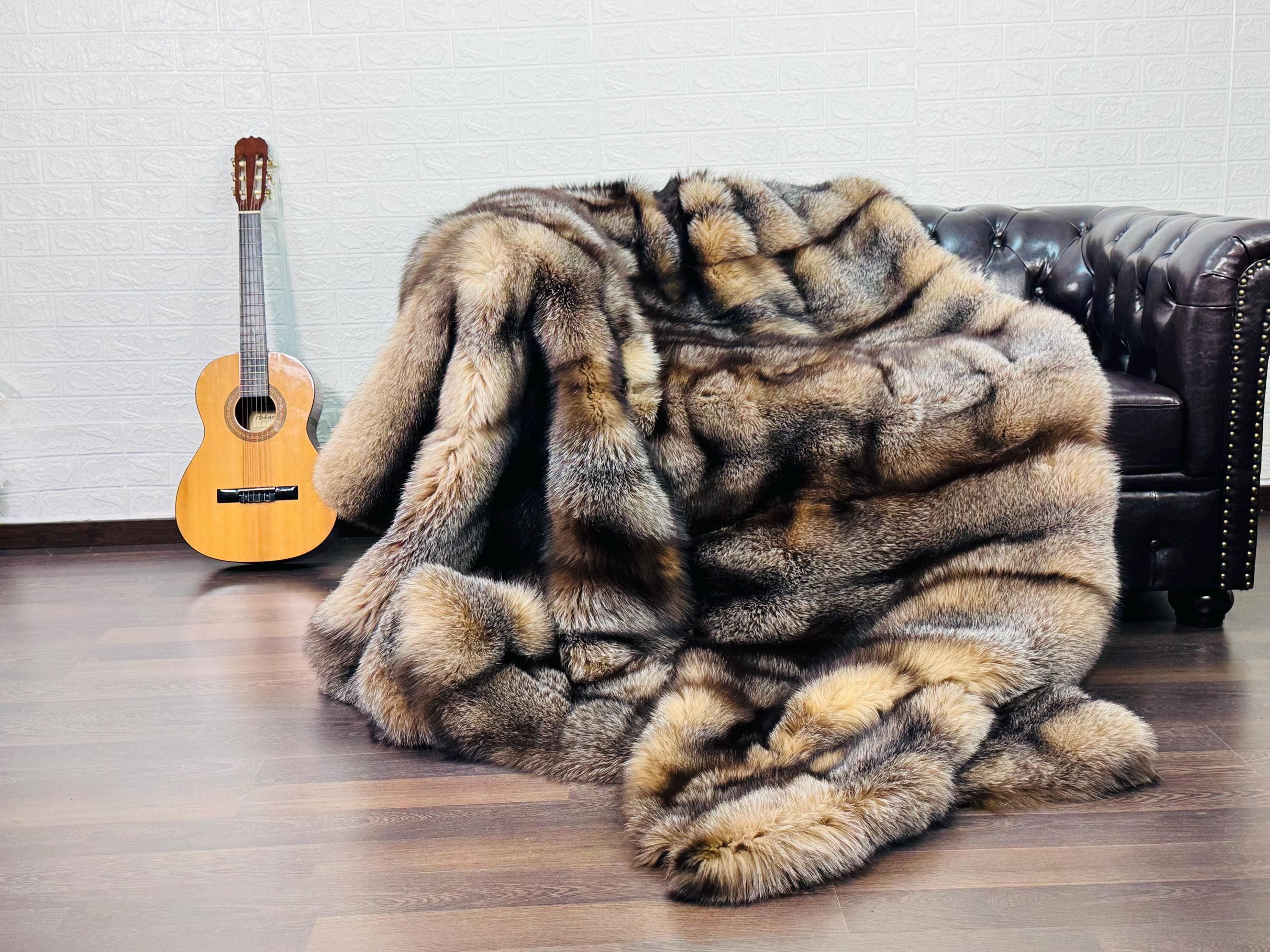 Bring timeless luxury and warmth into your home. Order your Natural Crystal Fox Fur Full Skin Throw Blanket today. ✨