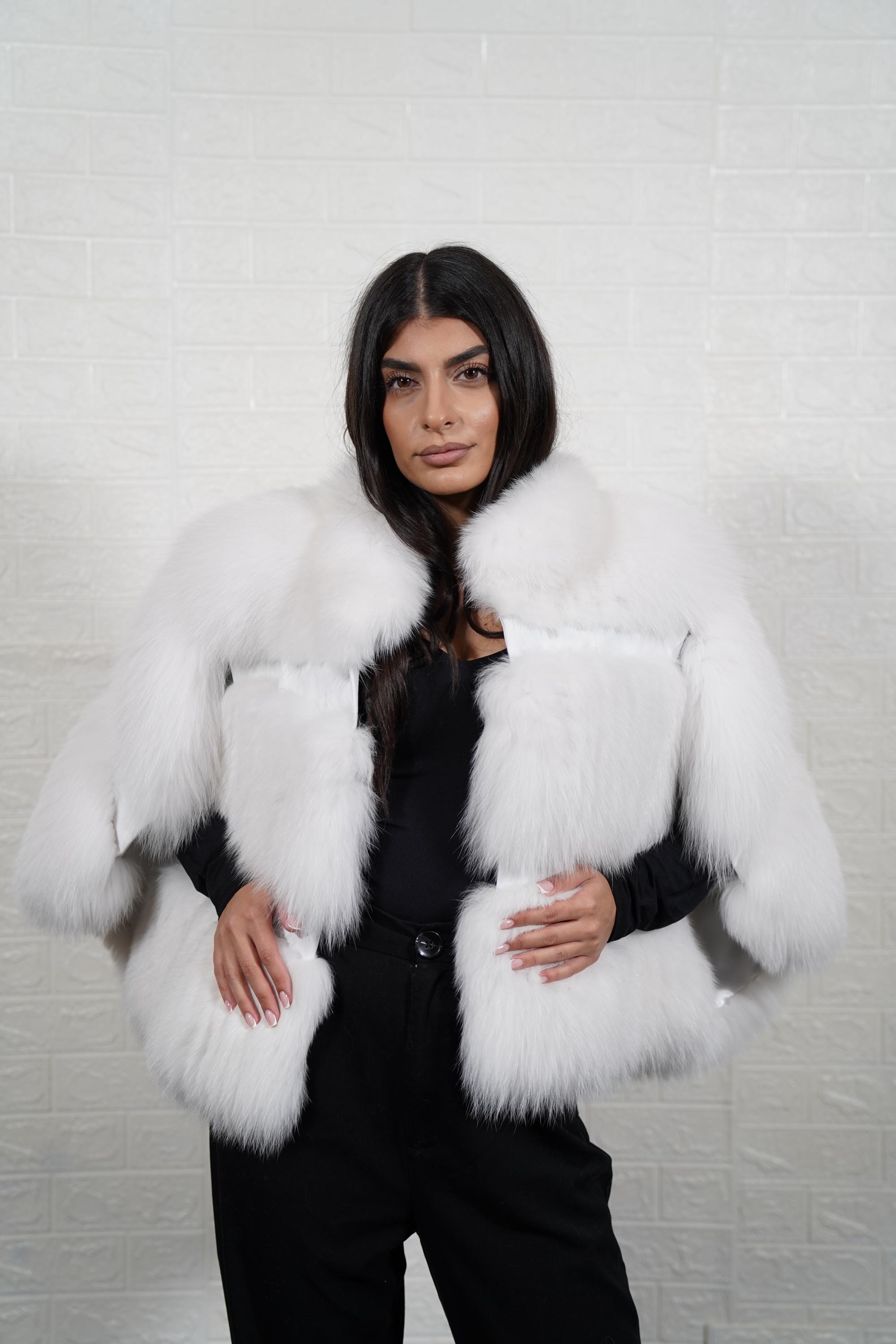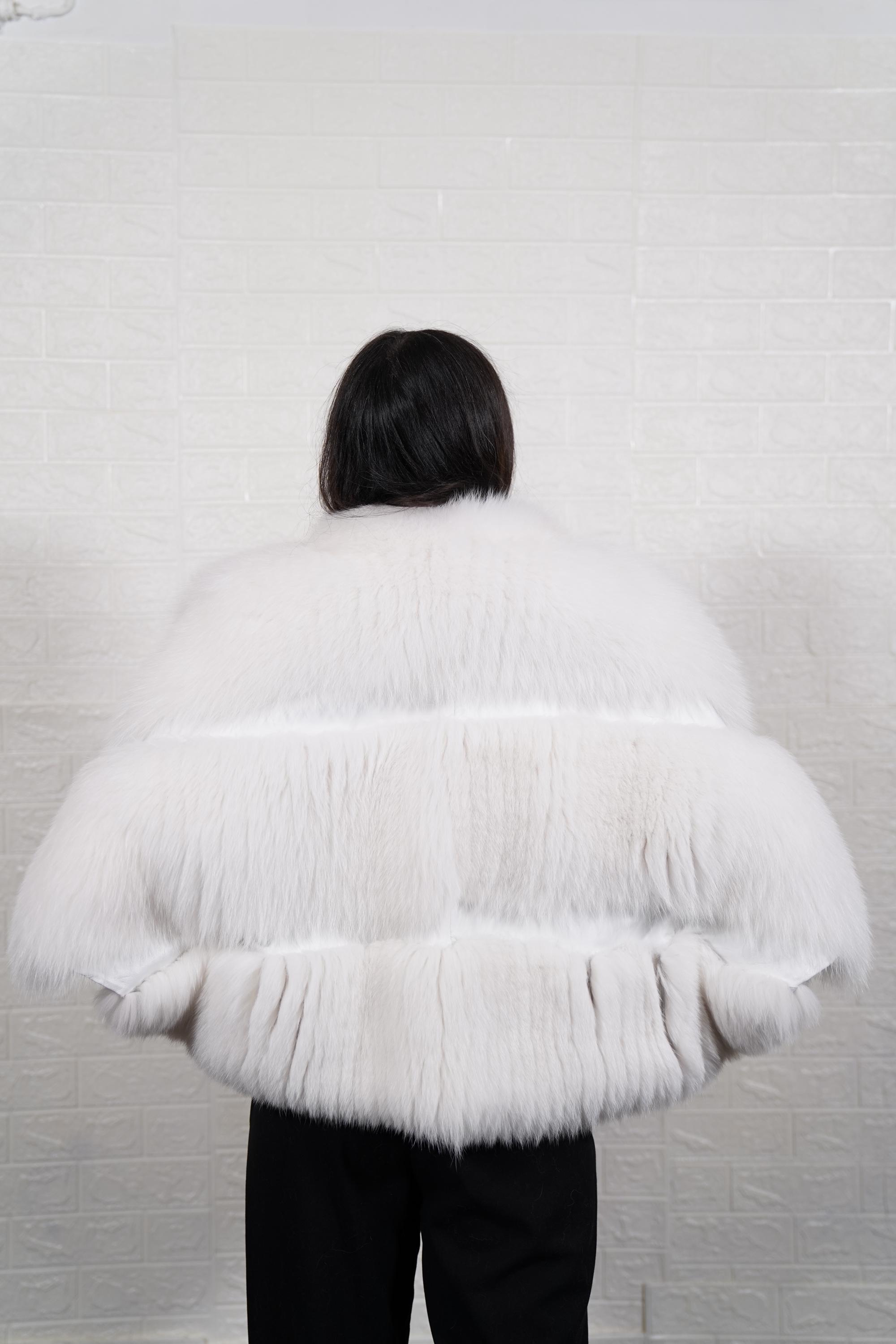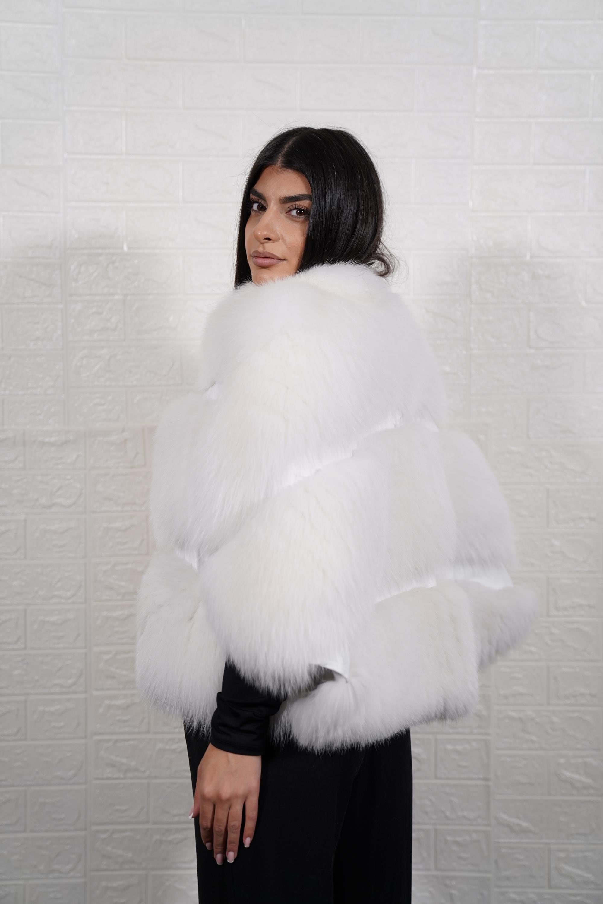 ✨ HANDMADE WHITE FOX FUR CAPE FULL SKIN WITH RABBIT FUR LINES – PREMIUM CRAFTSMANSHIP