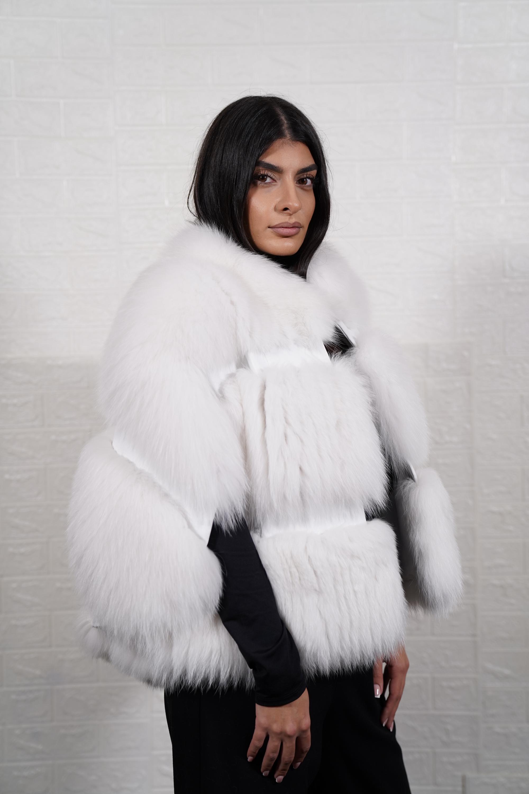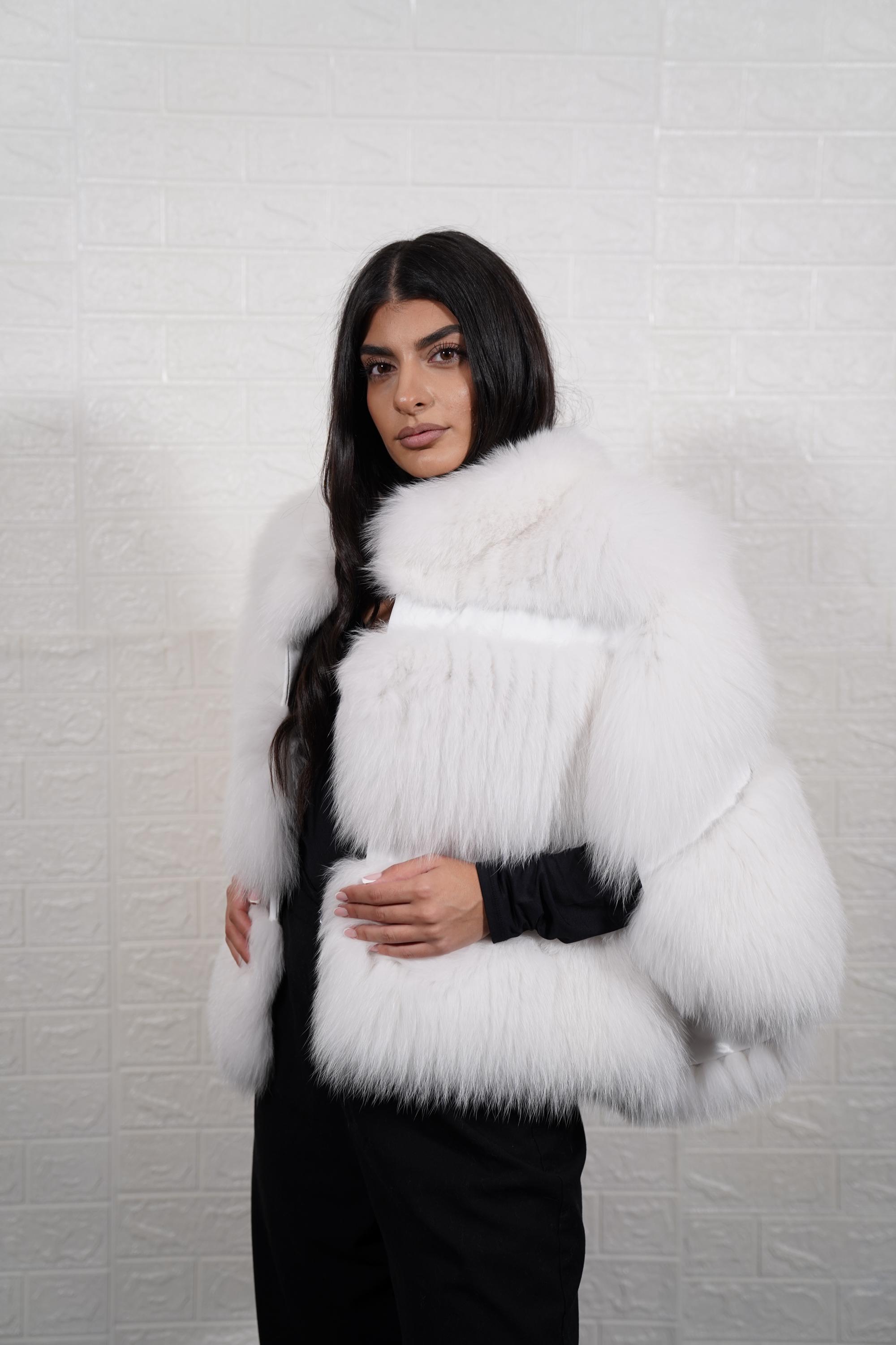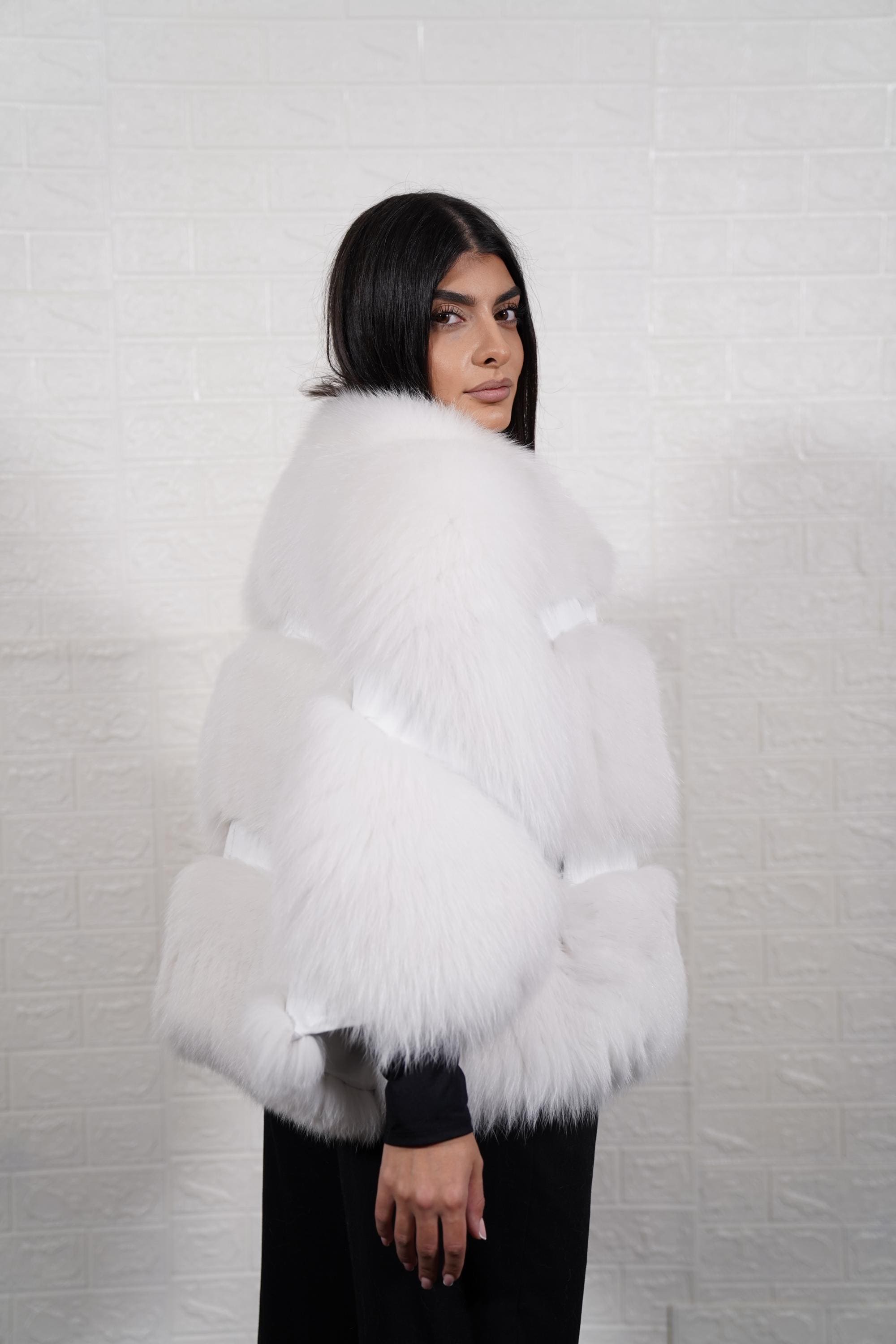 ✨ HANDMADE WHITE FOX FUR CAPE FULL SKIN WITH RABBIT FUR LINES – PREMIUM CRAFTSMANSHIP