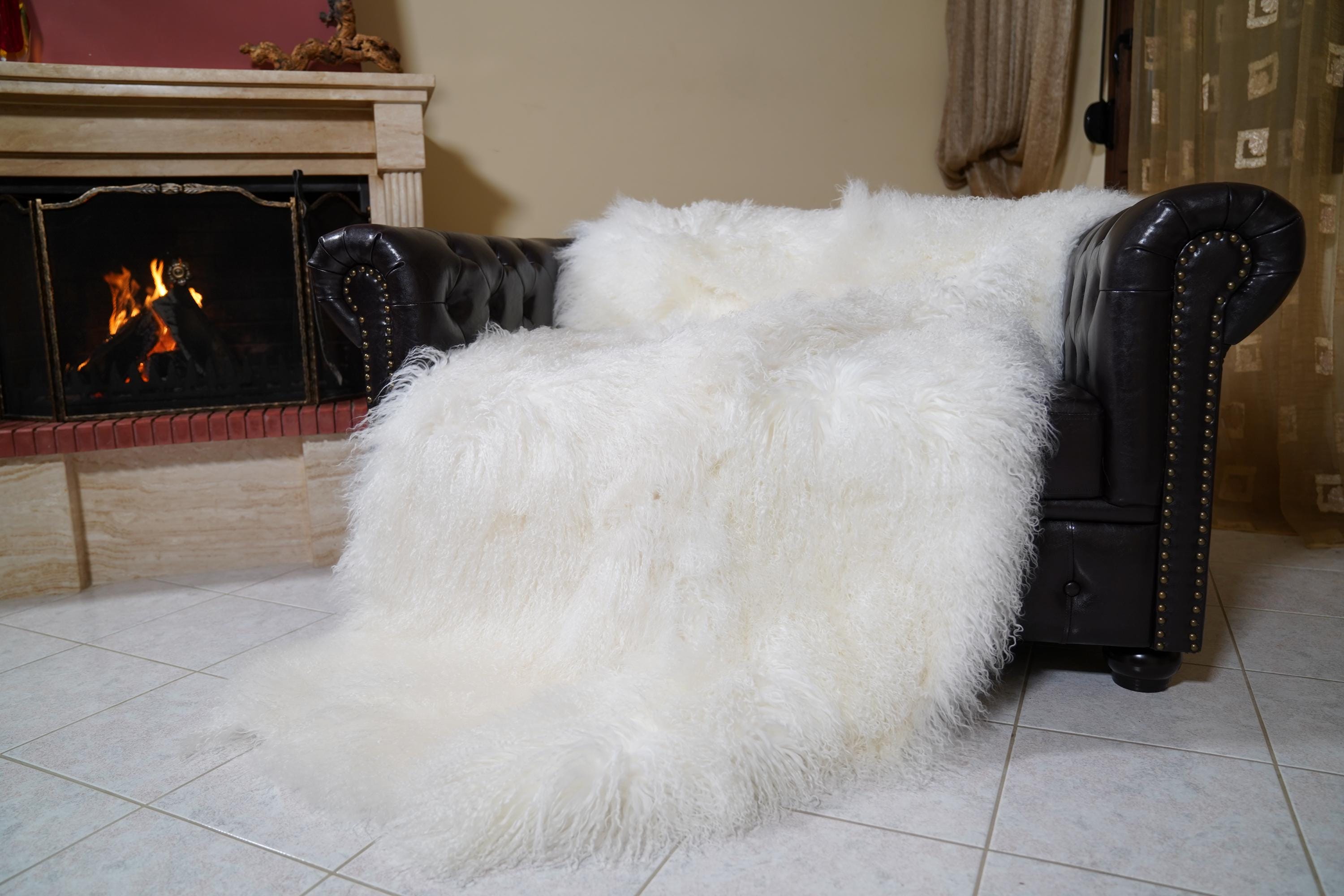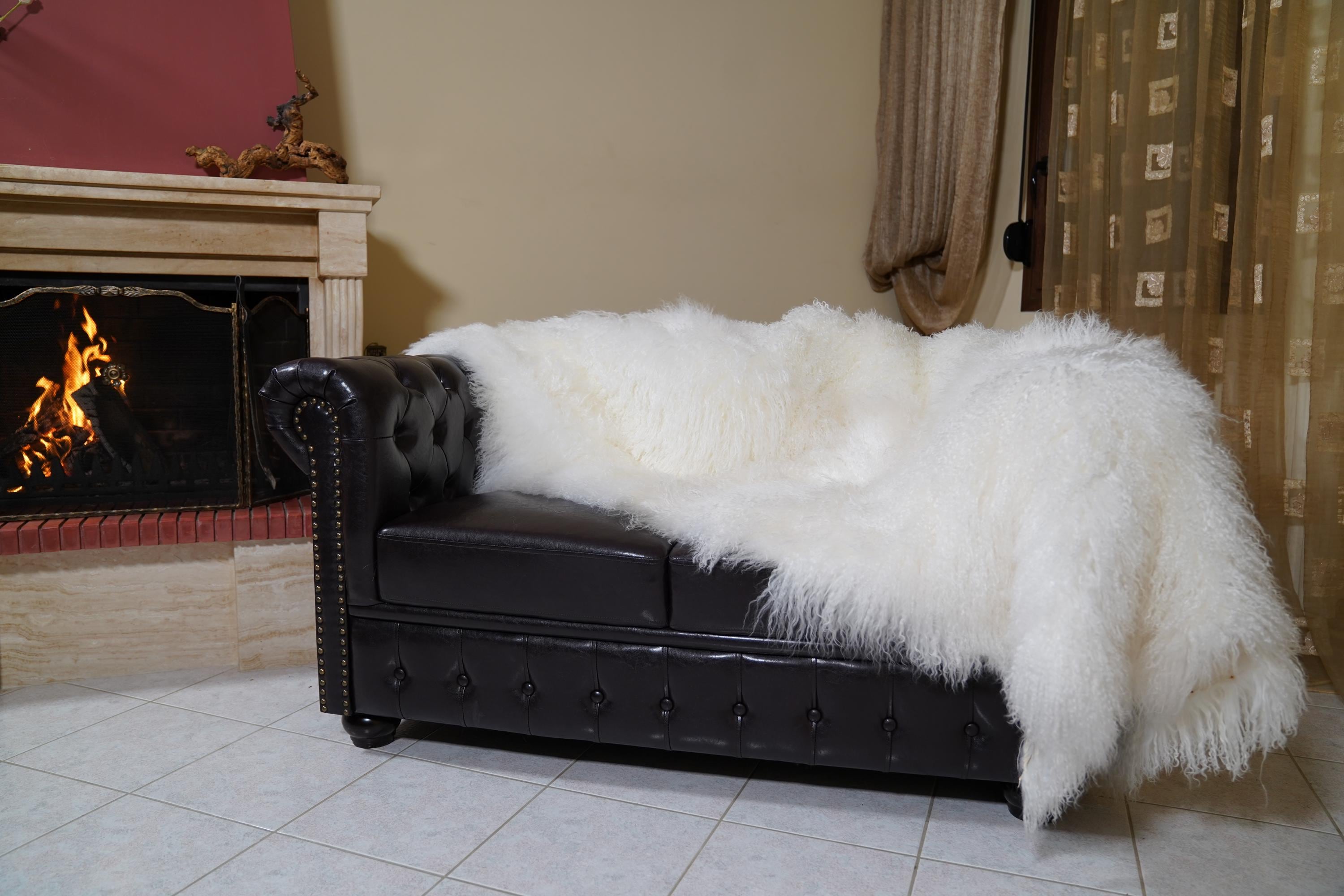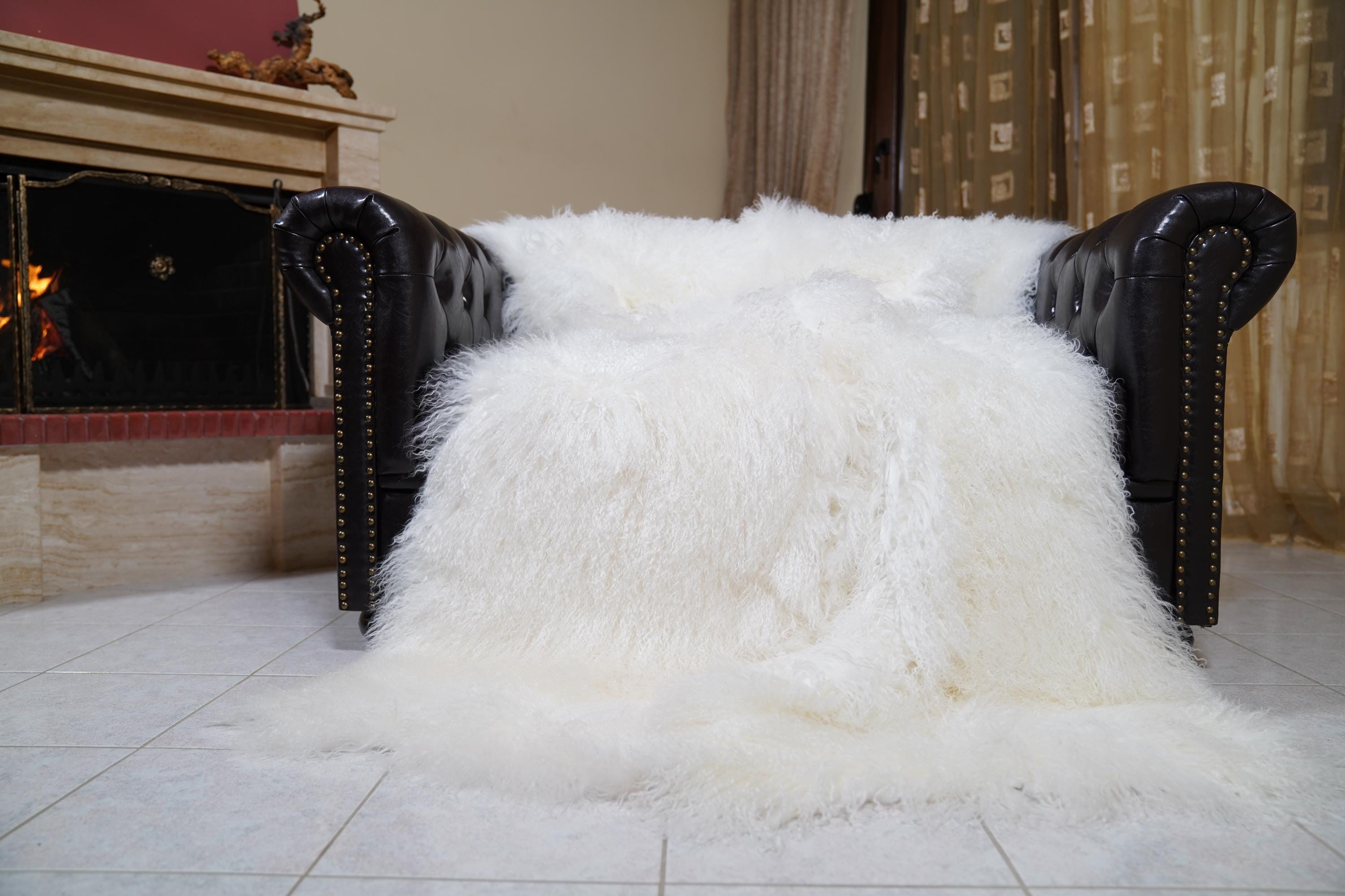 Transform your home with this breathtaking throw blanket, crafted from genuine white Mongolian sheepskin using full skin pelts for maximum fluffiness and volume. The unique curly texture and natural sheen make it a true statement piece—perfect as a bedspread, sofa accent, or cuddly companion for chilly nights. Each blanket is handmade by skilled artisans in Greece, combining traditional craftsmanship with premium materials for heirloom quality you can feel.