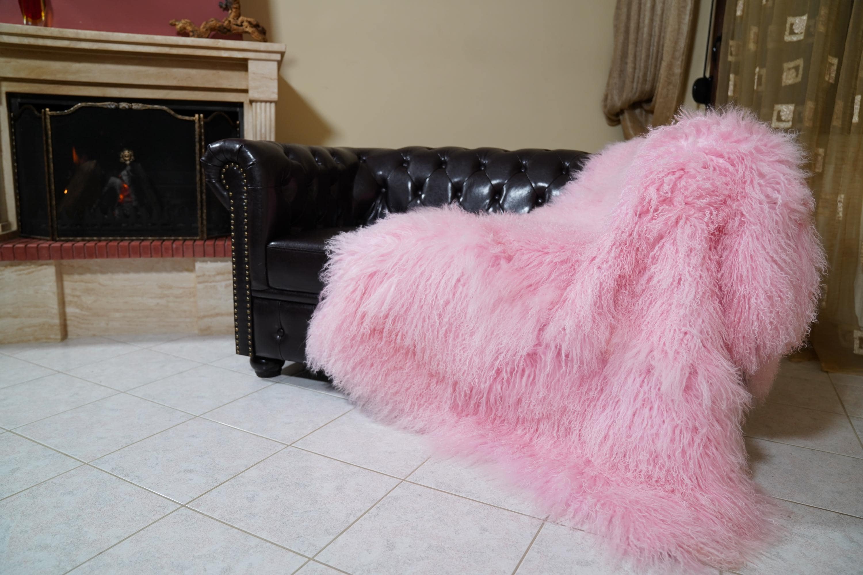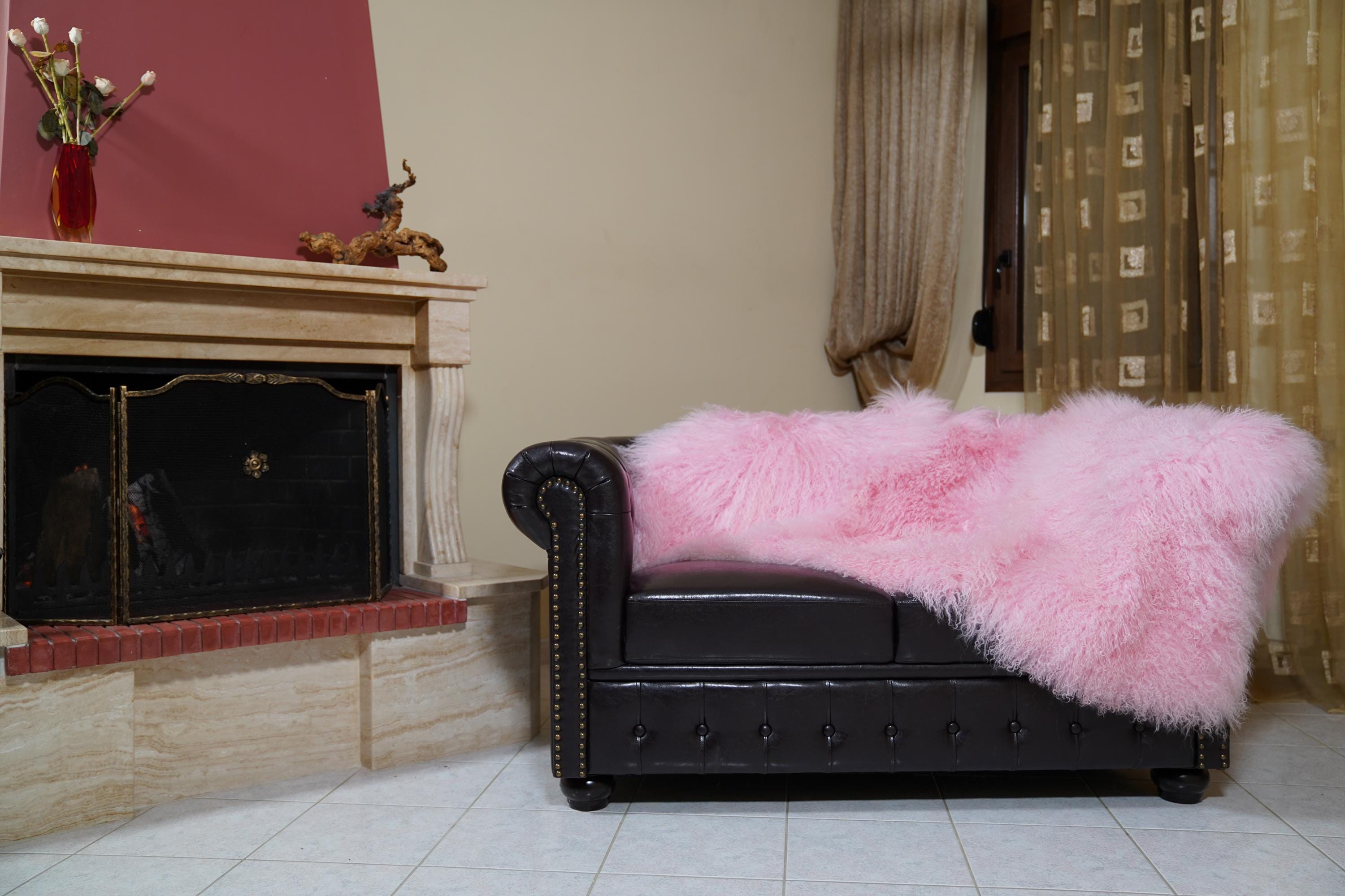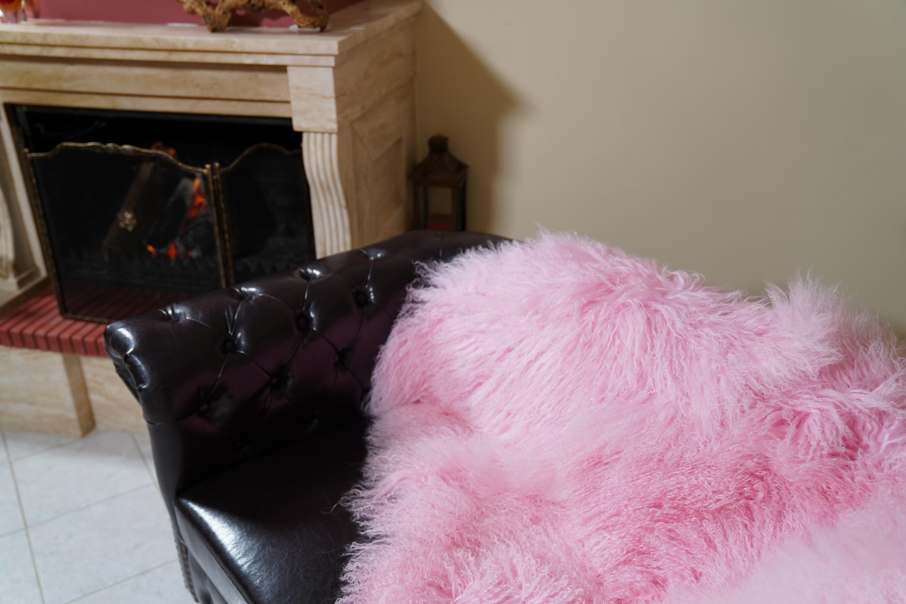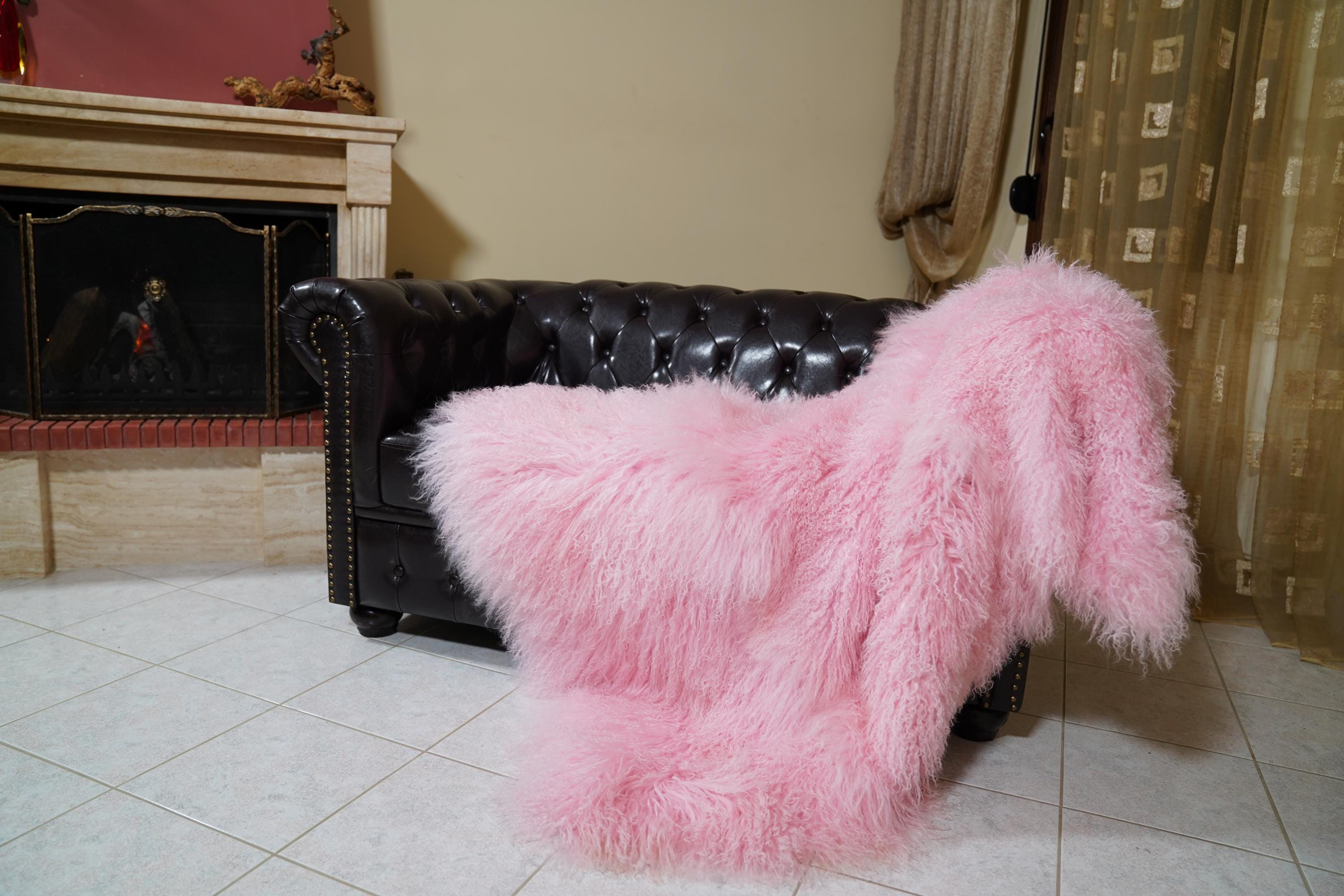 Add playful luxury and timeless comfort to your home. Order your real pink Mongolian fur sheepskin throw blanket full skin today. ✨