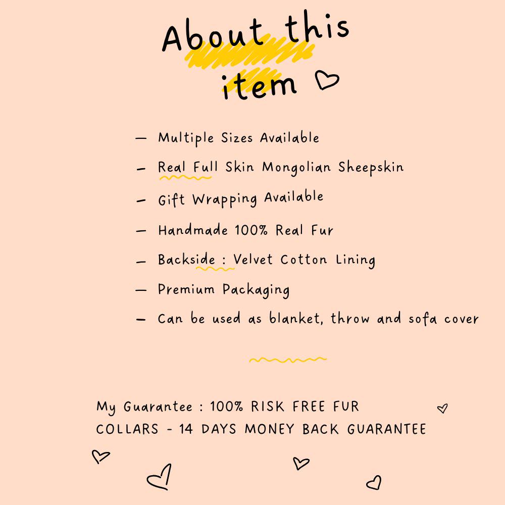 ● Fur Type: 100% Genuine Pink Mongolian Sheepskin (Full Skin Pelts)
