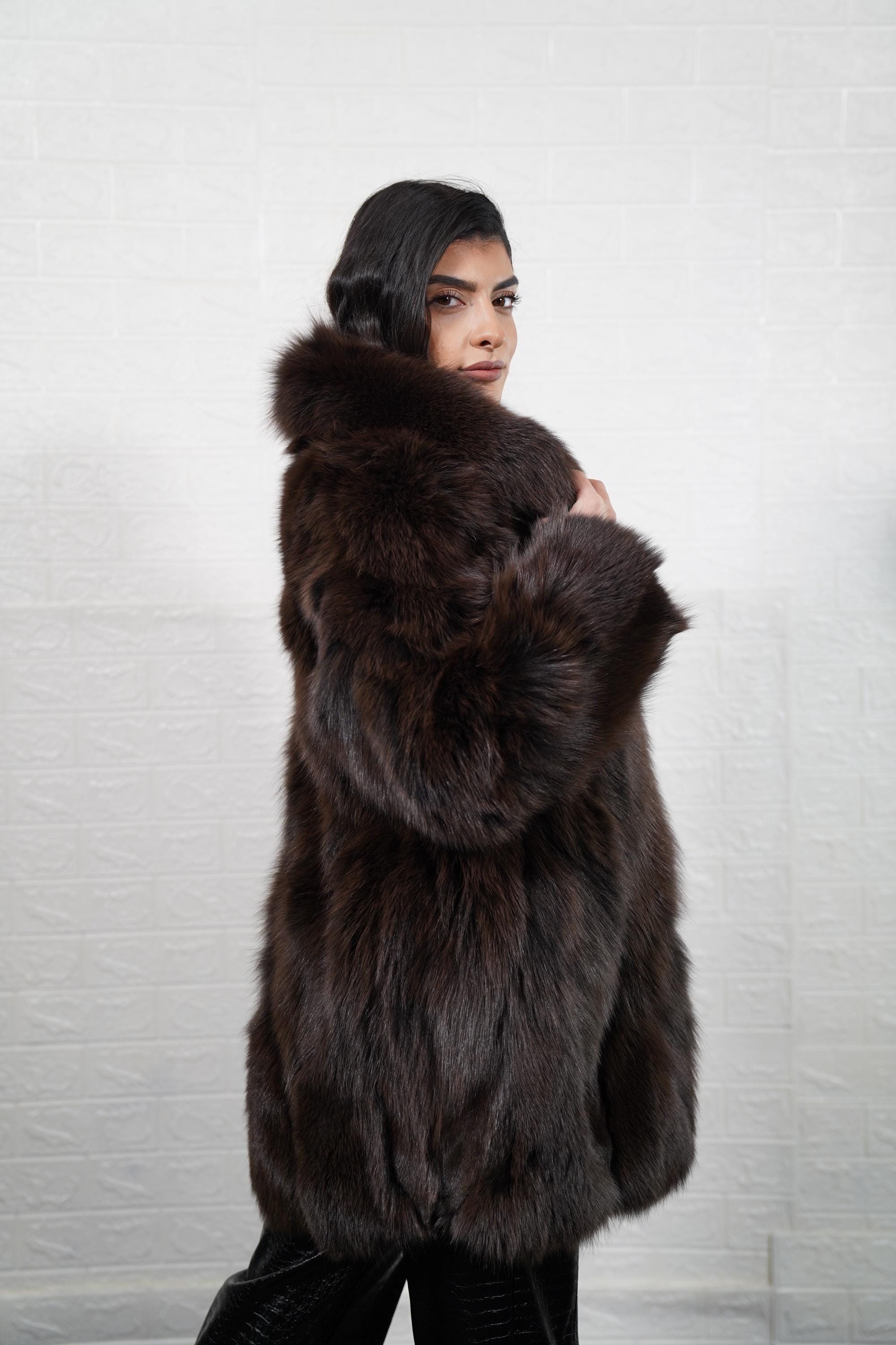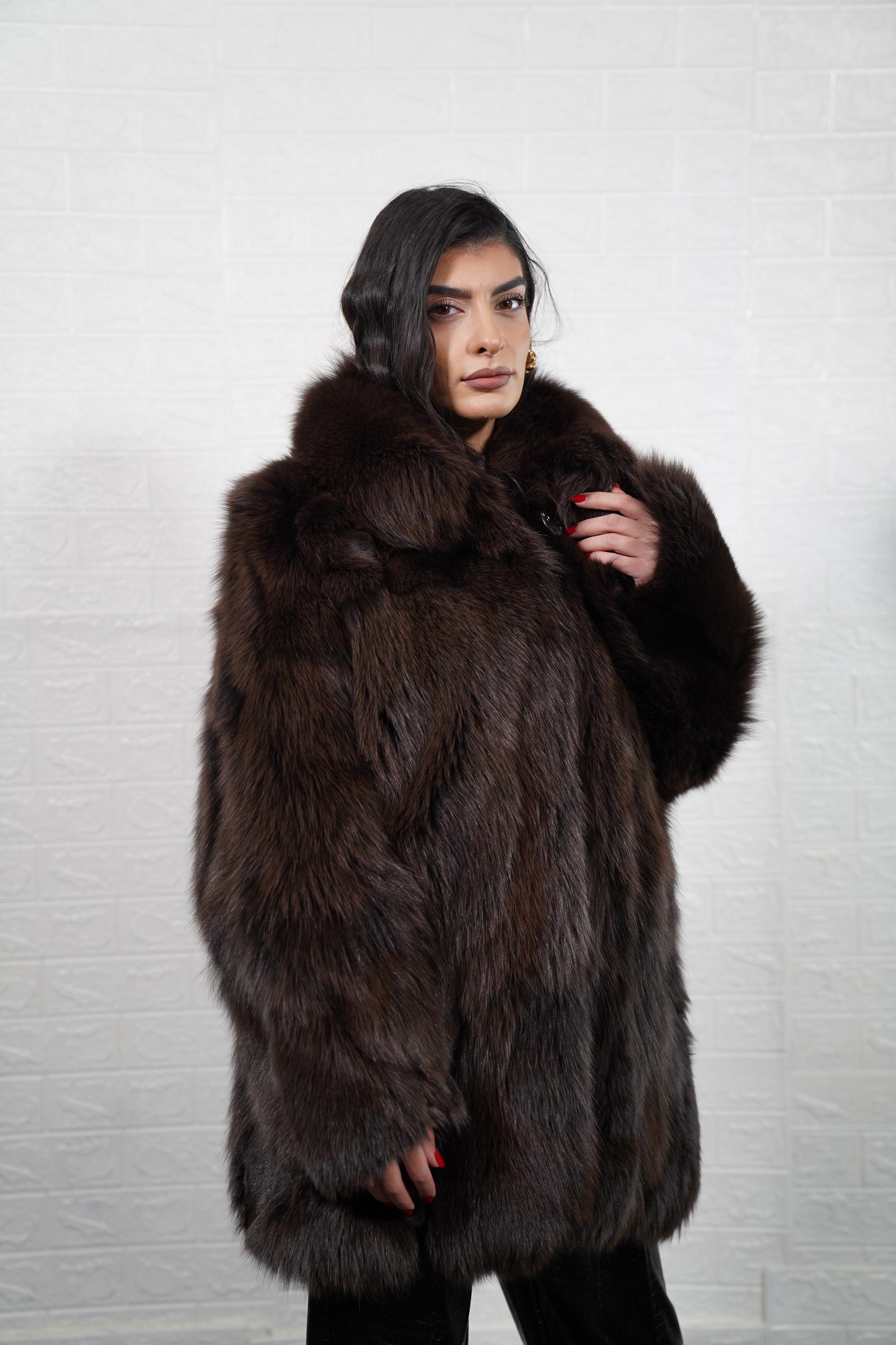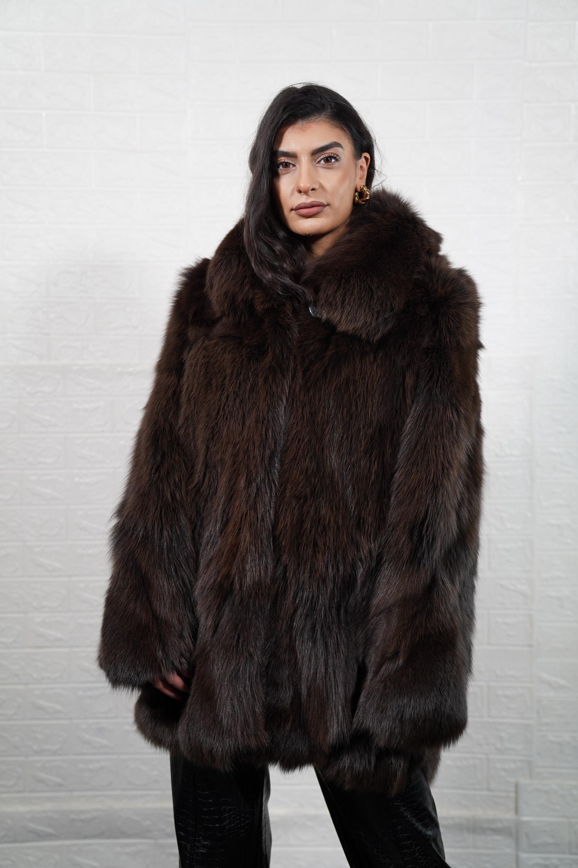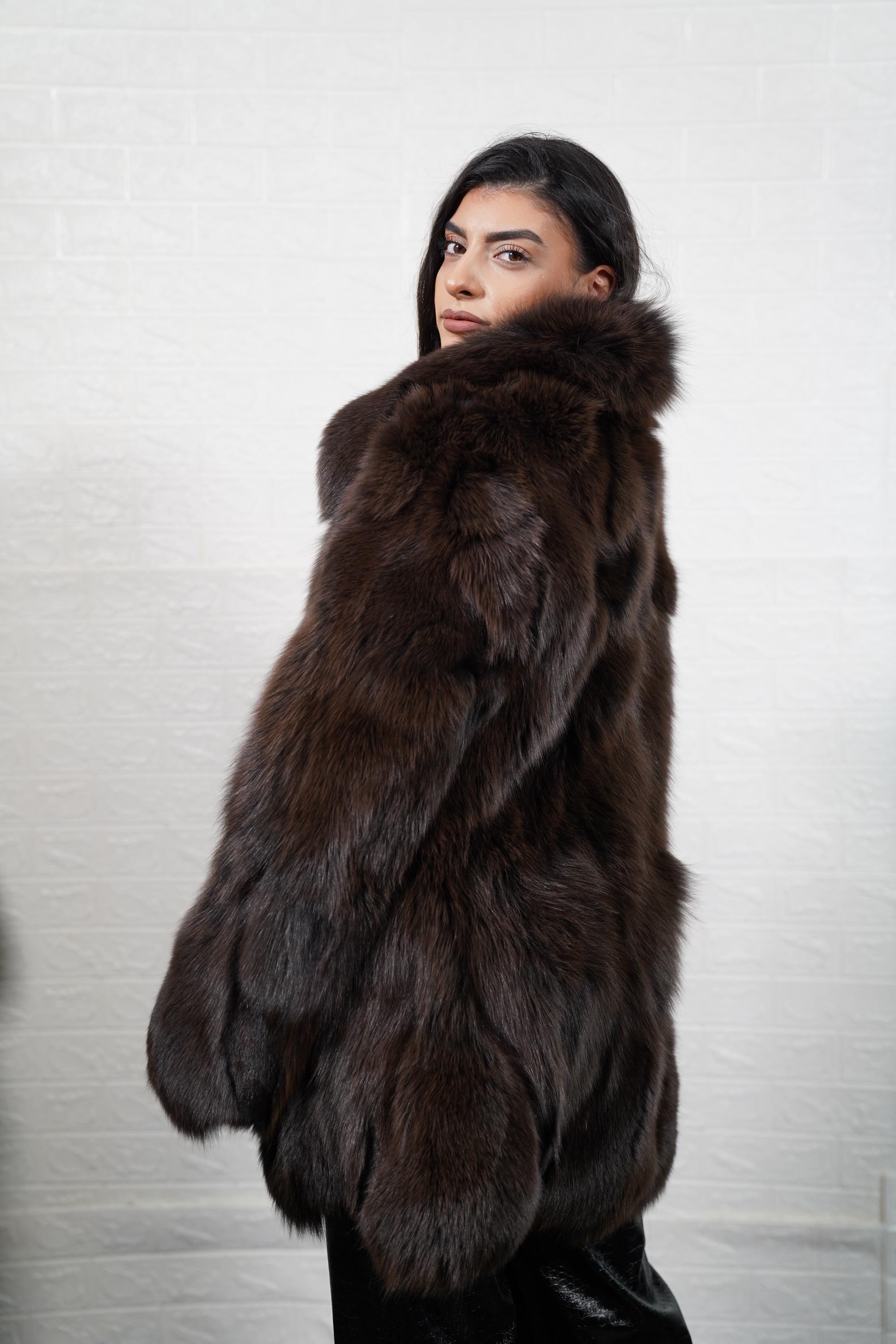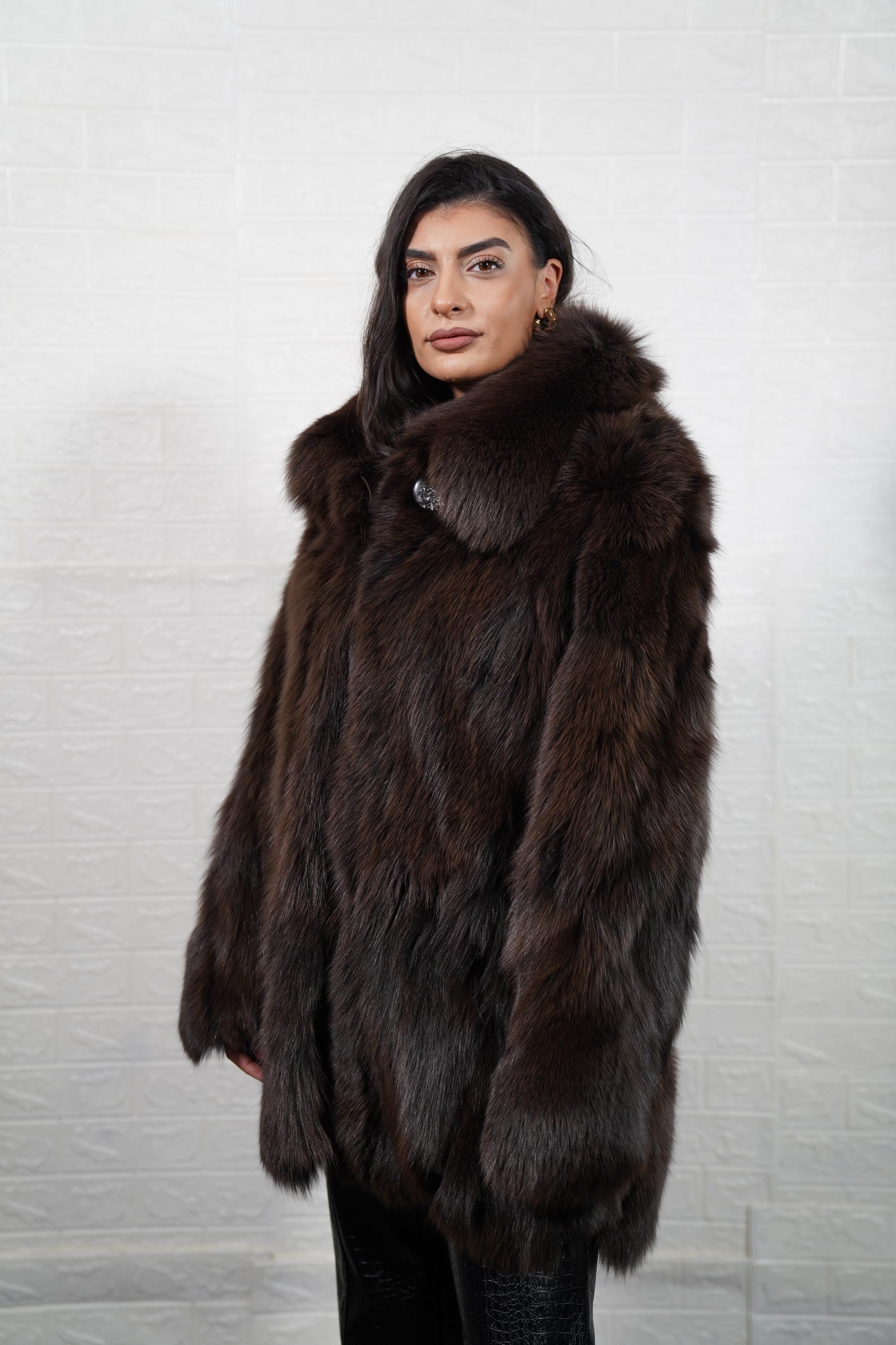 Add chic luxury to your winter wardrobe. Order your brown fox fur jacket coat today. ✨