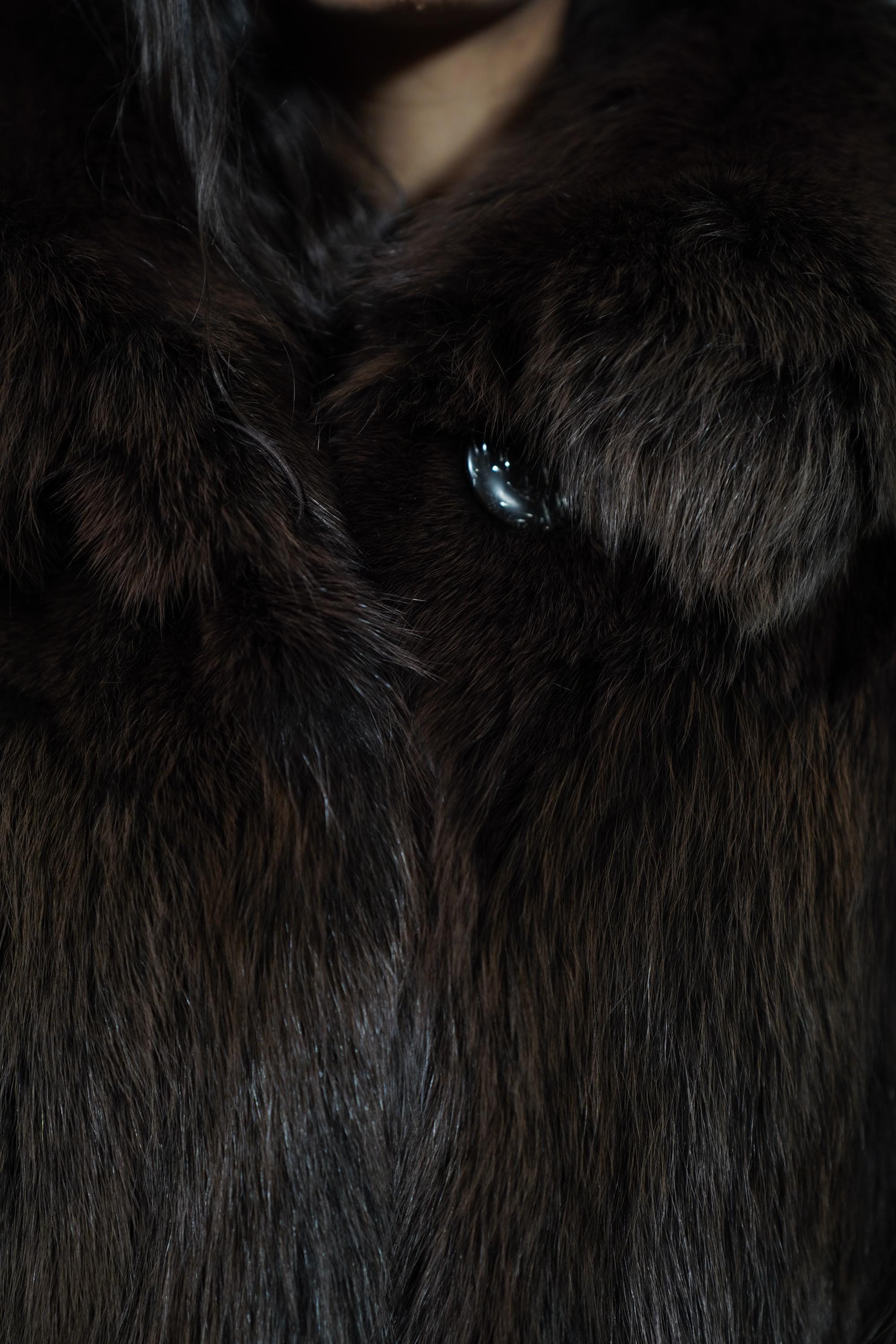 This unique jacket features plush brown fox fur for a dramatic, fluffy look. The luxurious fur and premium lining provide warmth, comfort, and a one-of-a-kind winter outerwear piece that instantly elevates any outfit.