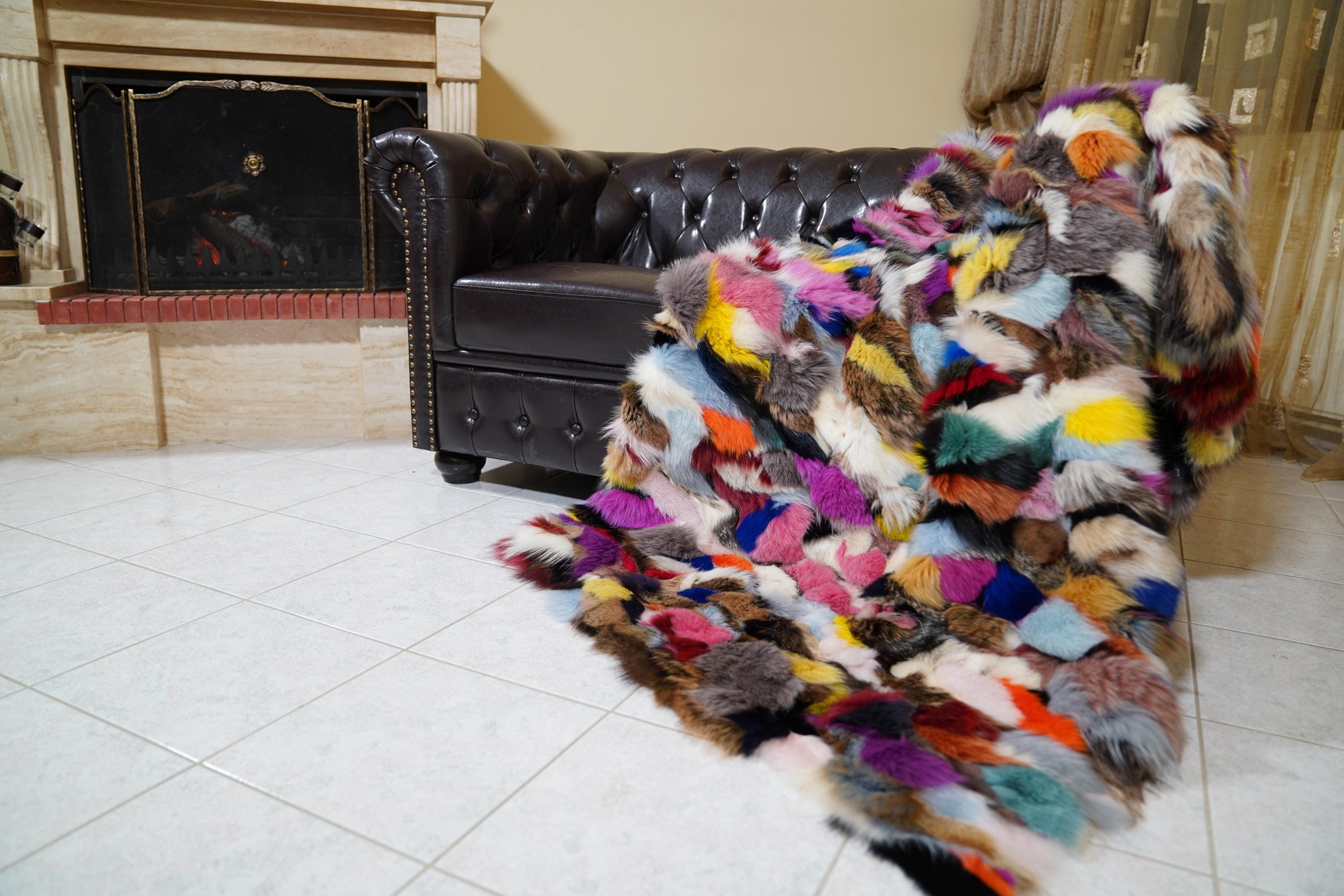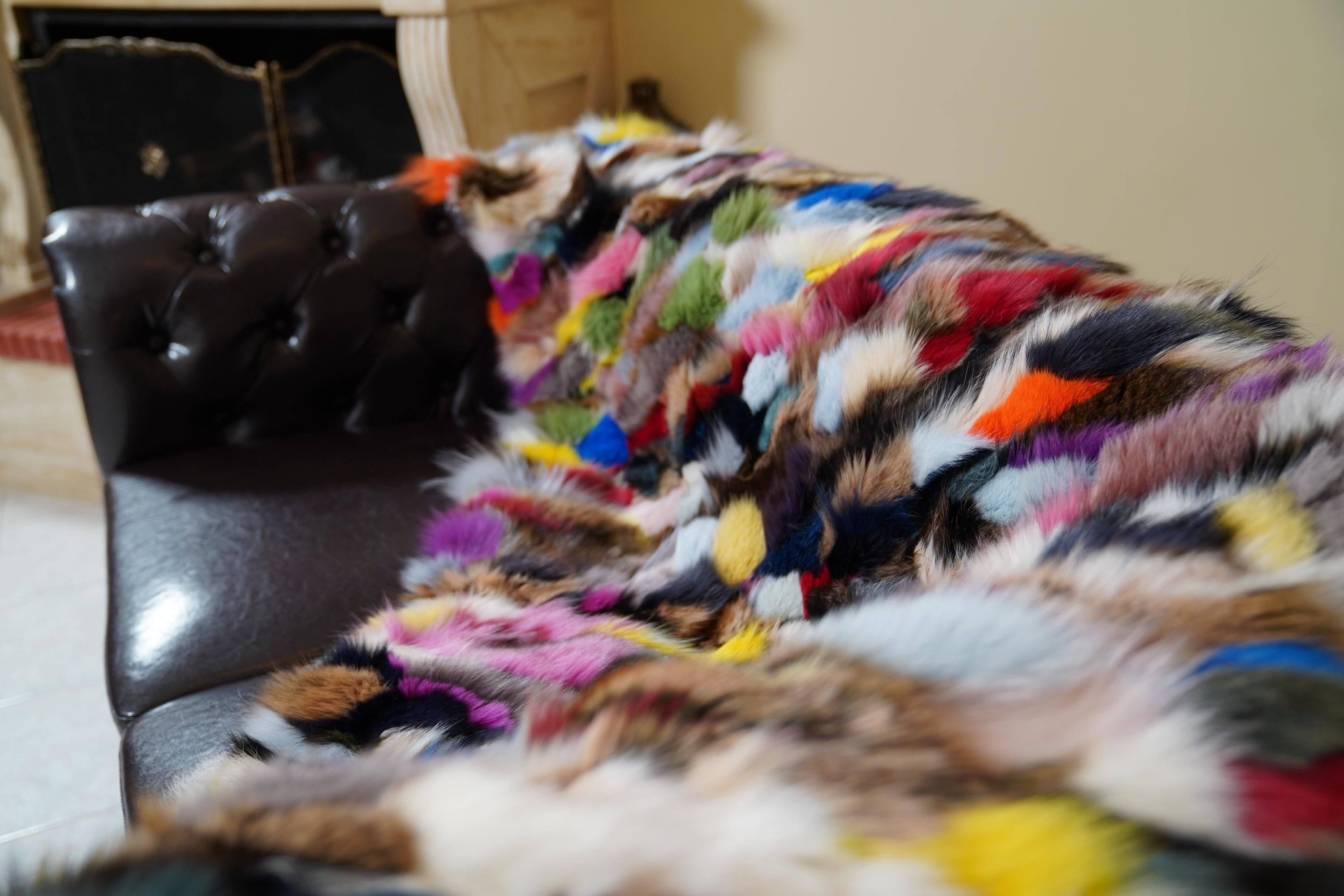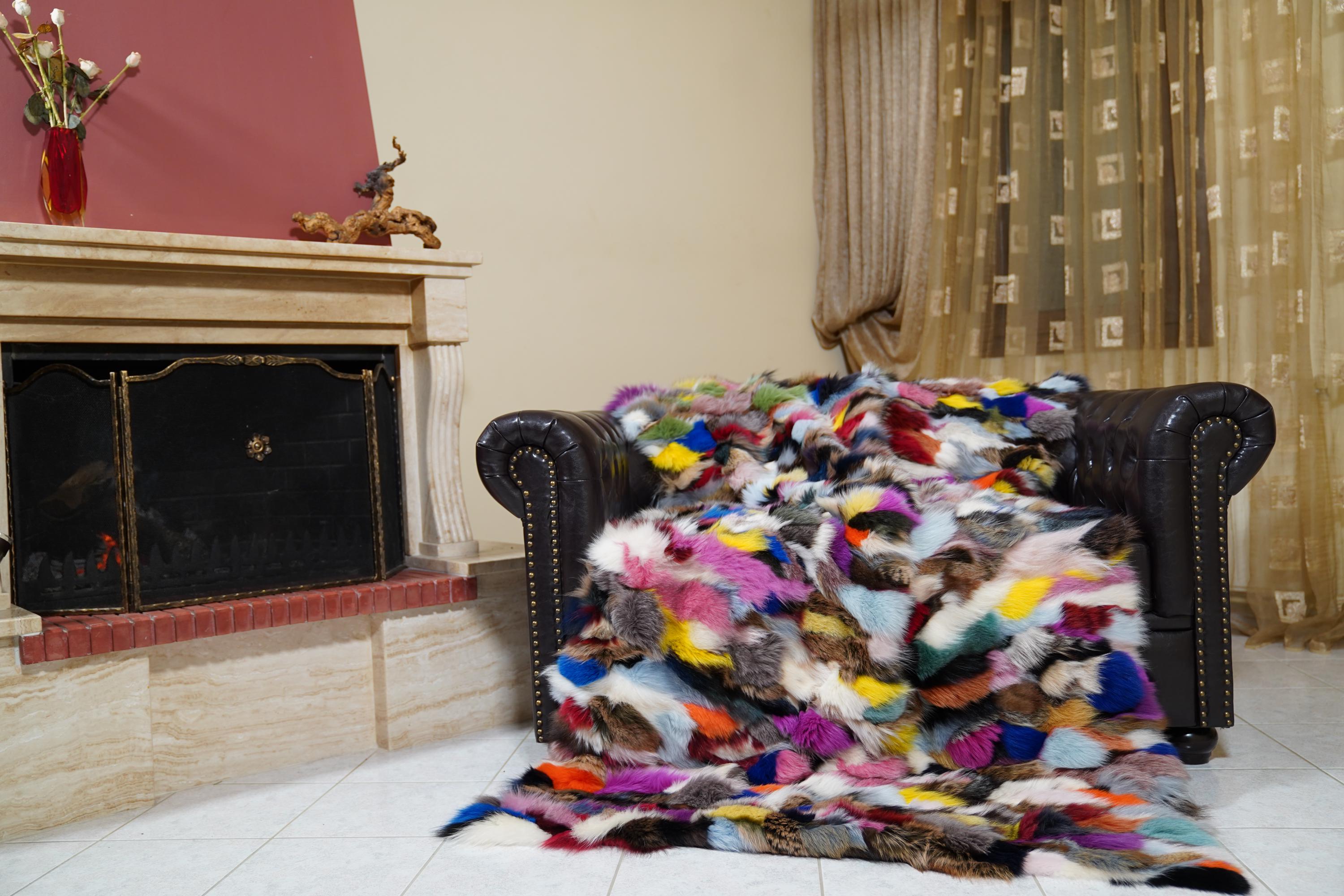 Add vibrant luxury and artistic flair to your home. Order your colorful fox fur throw blanket today. ✨