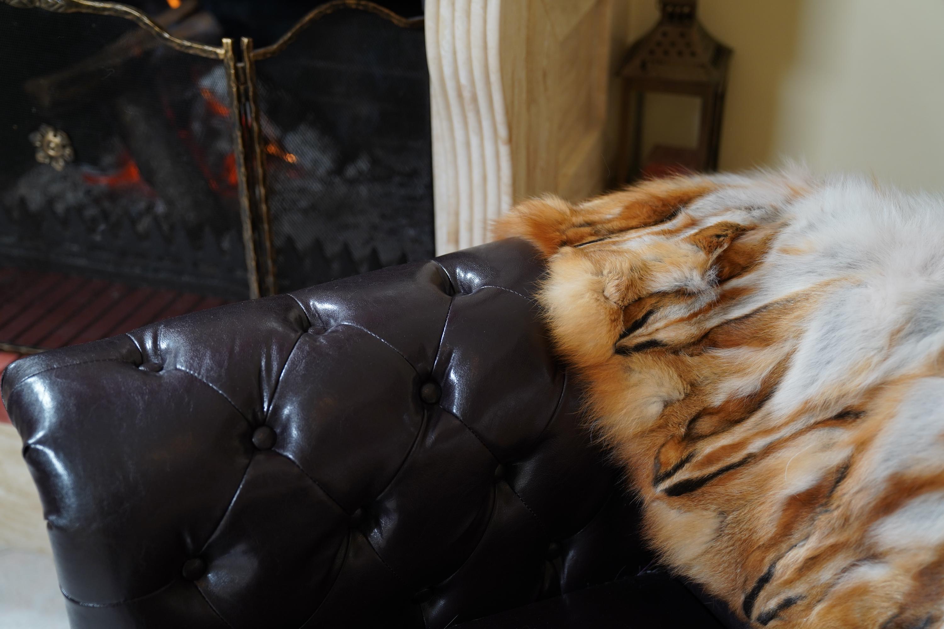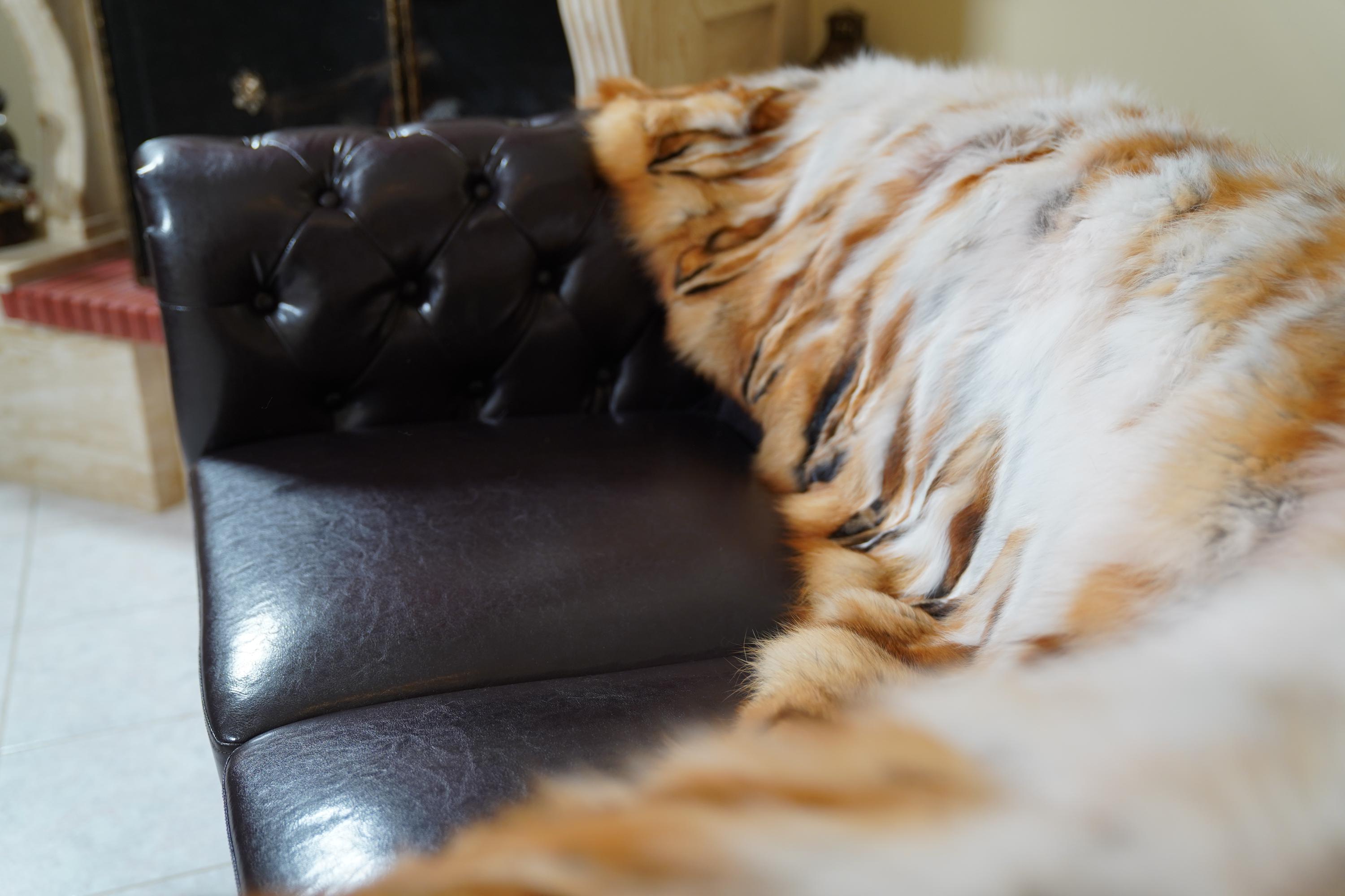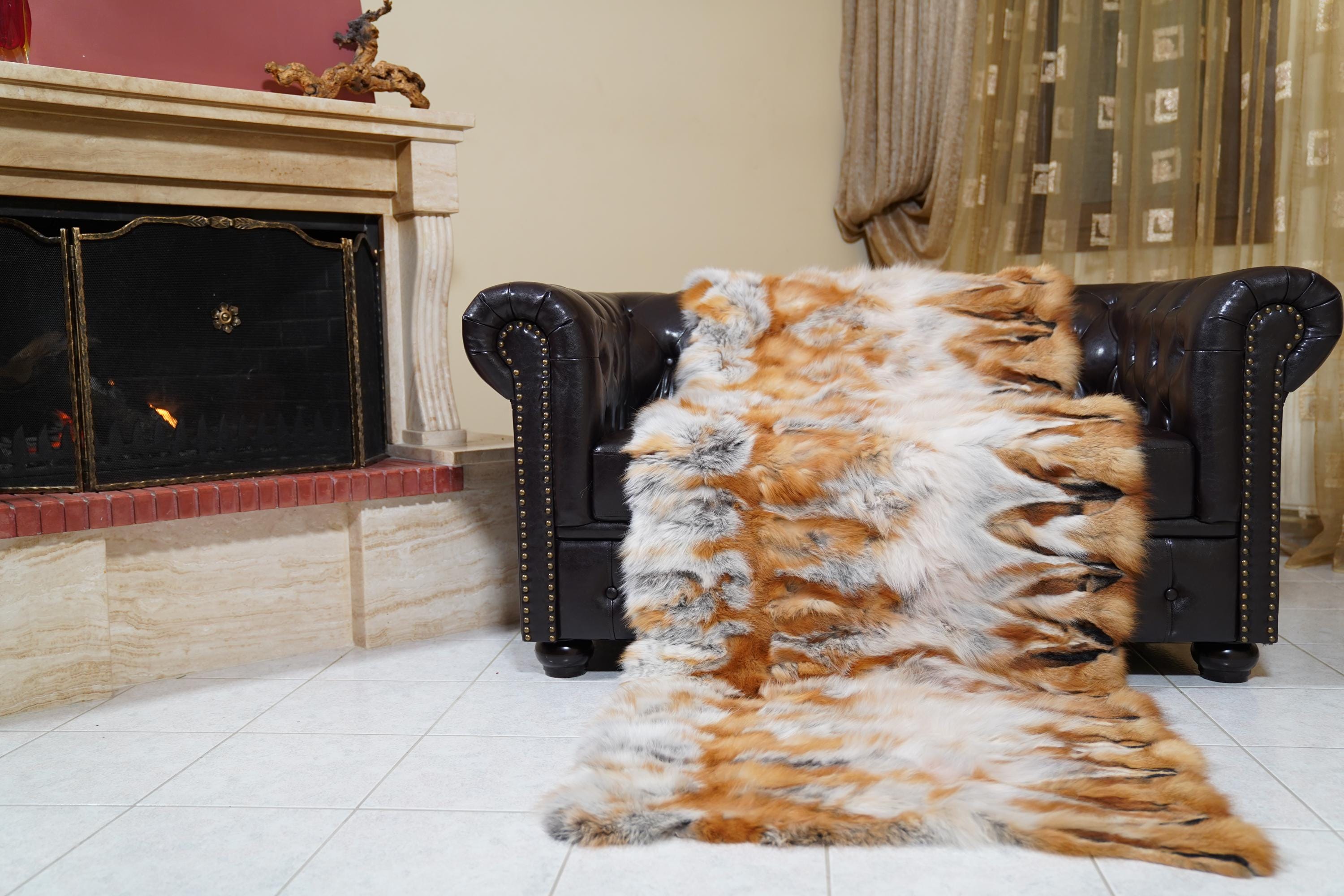 Add rare color and unique artistry to your home. Order your red Canadian fox fur throw blanket with unique design today. ✨