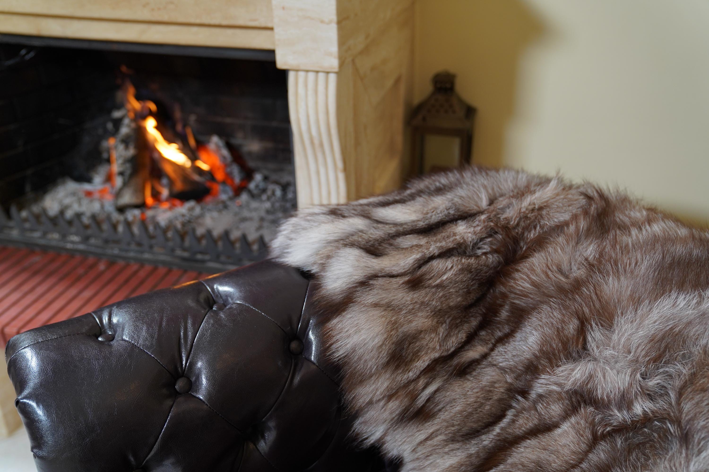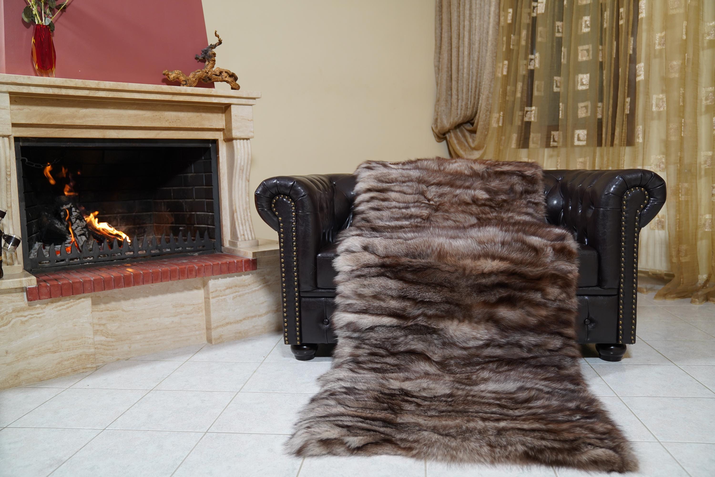 Add natural artistry and luxury to your home. Order your crystal natural fox fur throw blanket with unique pattern today. ✨