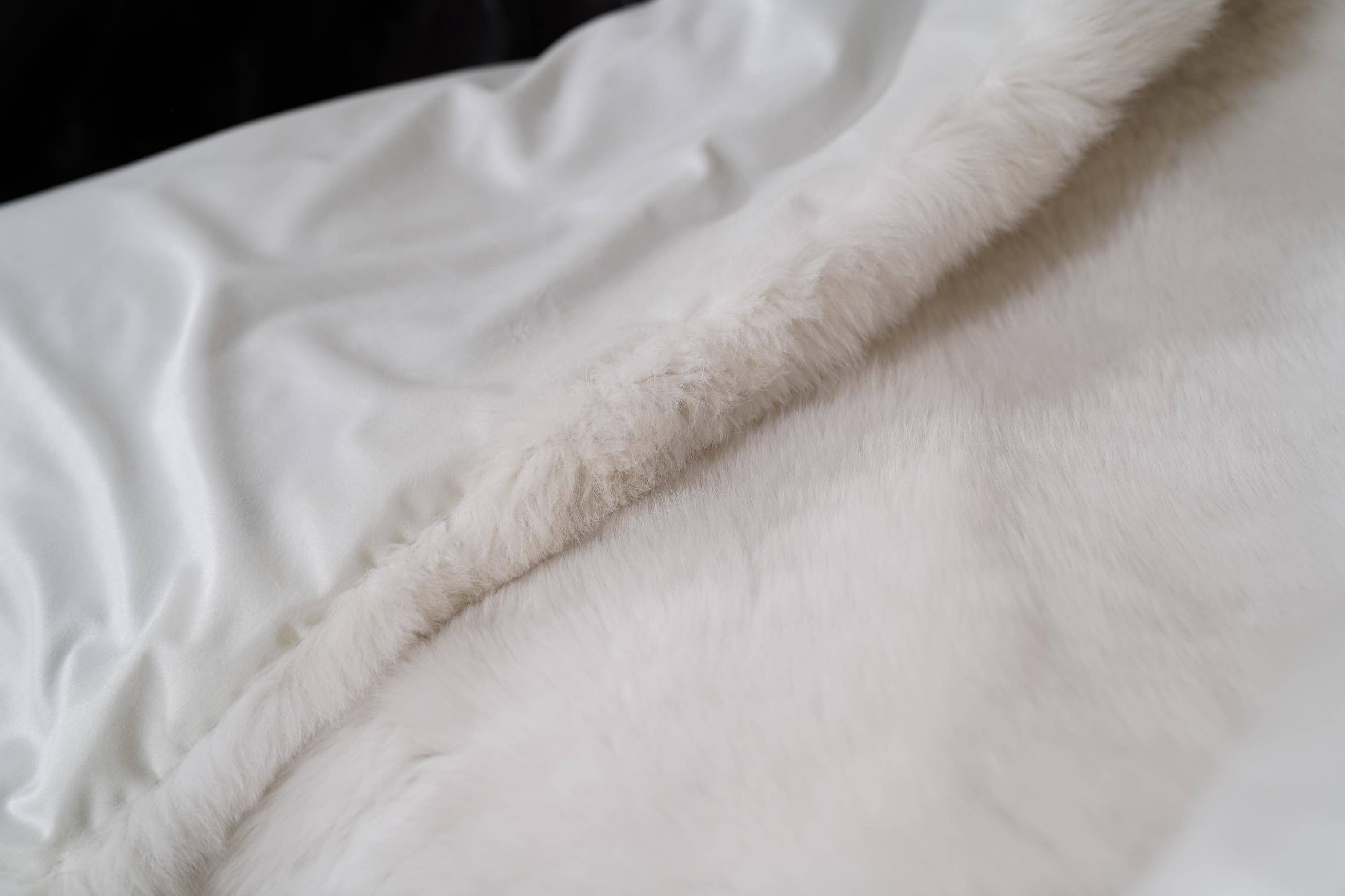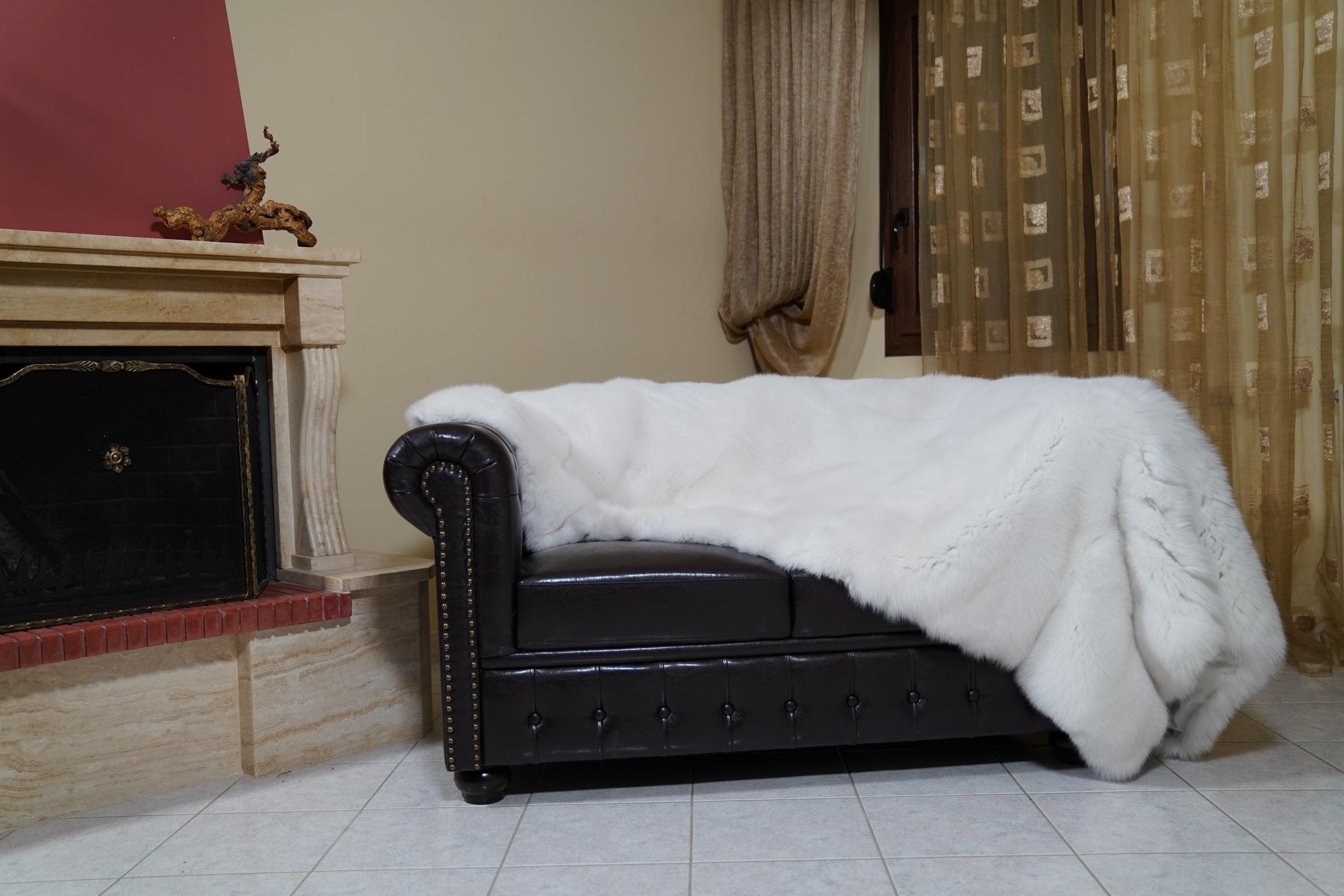 This exclusive throw blanket and area rug is crafted from genuine white fox fur, using full skin pelts ethically and organically farmed for the highest quality and peace of mind. The result is a breathtakingly soft, voluminous, and luminous piece—perfect as a large area rug, luxurious bedspread, or statement sofa accent. The full skin construction offers maximum plushness, texture, and a truly premium look, making it ideal for modern and Scandinavian-inspired interiors.