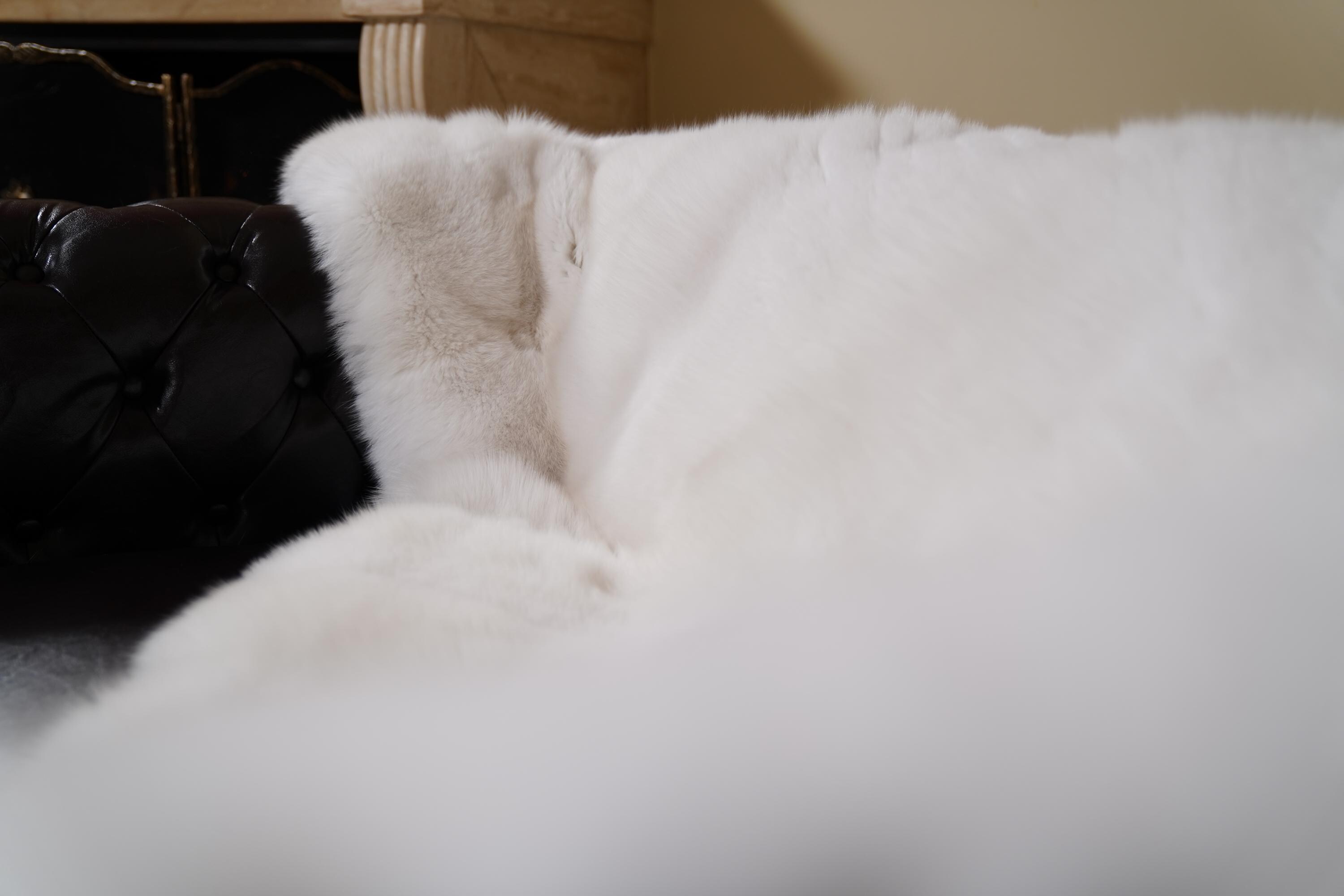 Add exclusive, sustainable luxury and Scandinavian style to your home. Order your real white fox fur throw blanket or large area rug (full skin) today. ✨