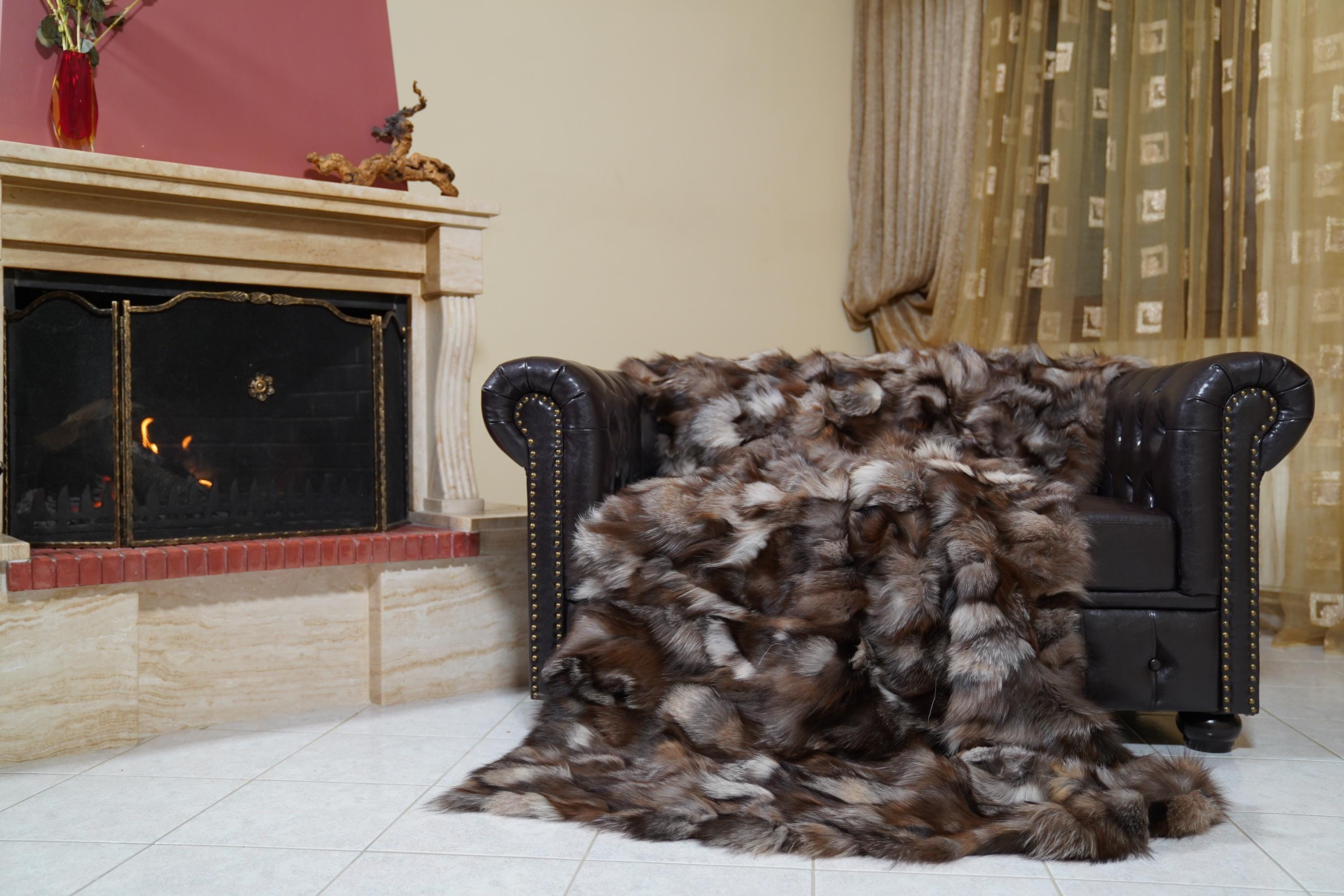 ✨ EXCLUSIVE REAL CRYSTAL FOX FUR THROW BLANKET / LARGE AREA RUG – ETHICALLY & ORGANICALLY FARMED, SCANDINAVIAN DECOR