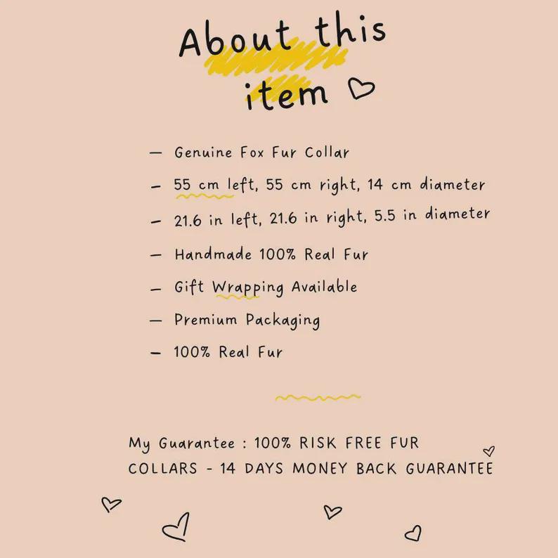 "I recently purchased this fur collar from Etsy, and it has exceeded my expectations. The quality is exceptional; it's soft and luxurious, adding elegance to any outfit. The transaction was smooth, and the seller was responsive. Knowing that the fur is ethically sourced is a big plus for me. I receive compliments every time I wear it, making it a favorite winter accessory. Highly recommended! "