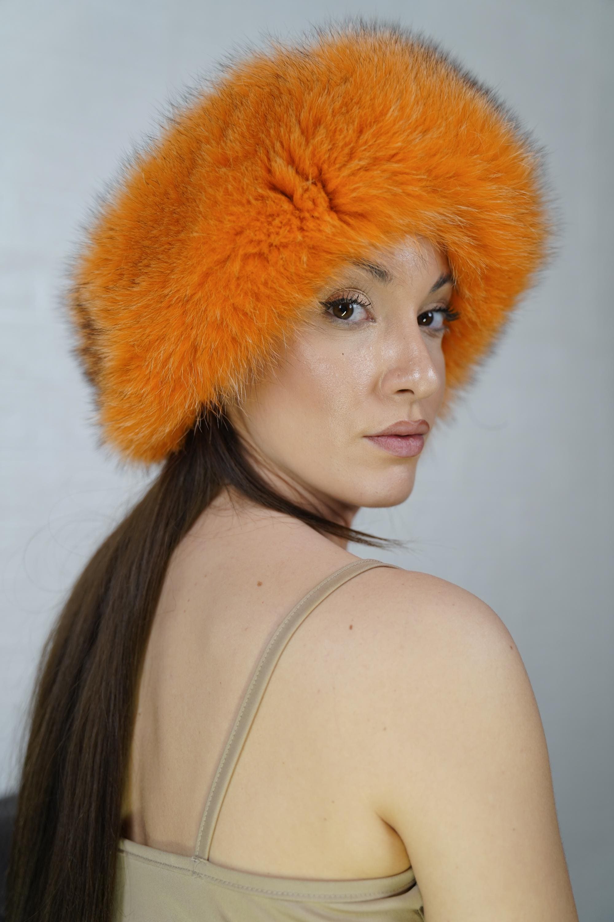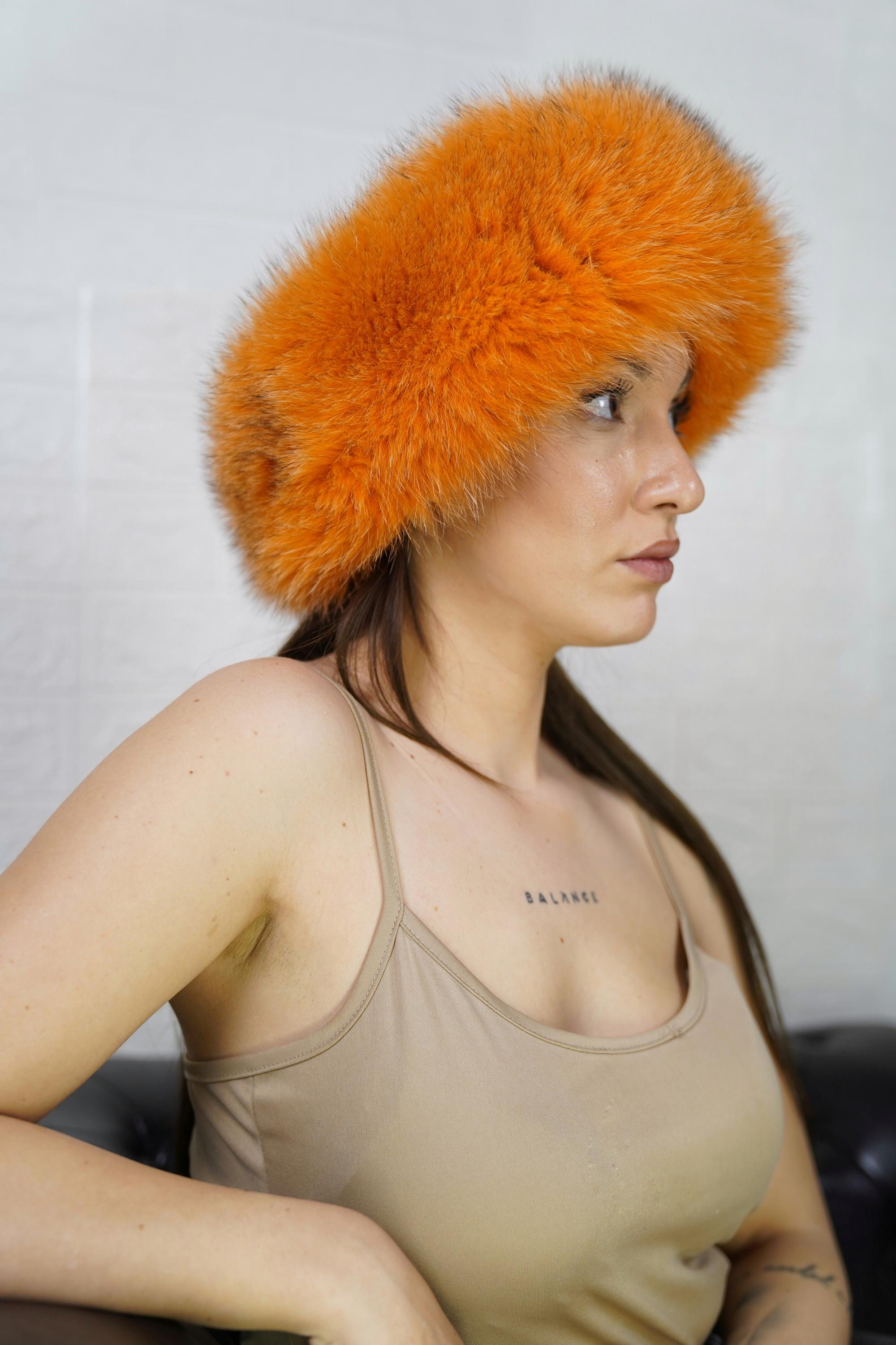 Add luxury, warmth, and a bold pop of color to your winter style. Order your orange fox fur headband full skin today. ✨