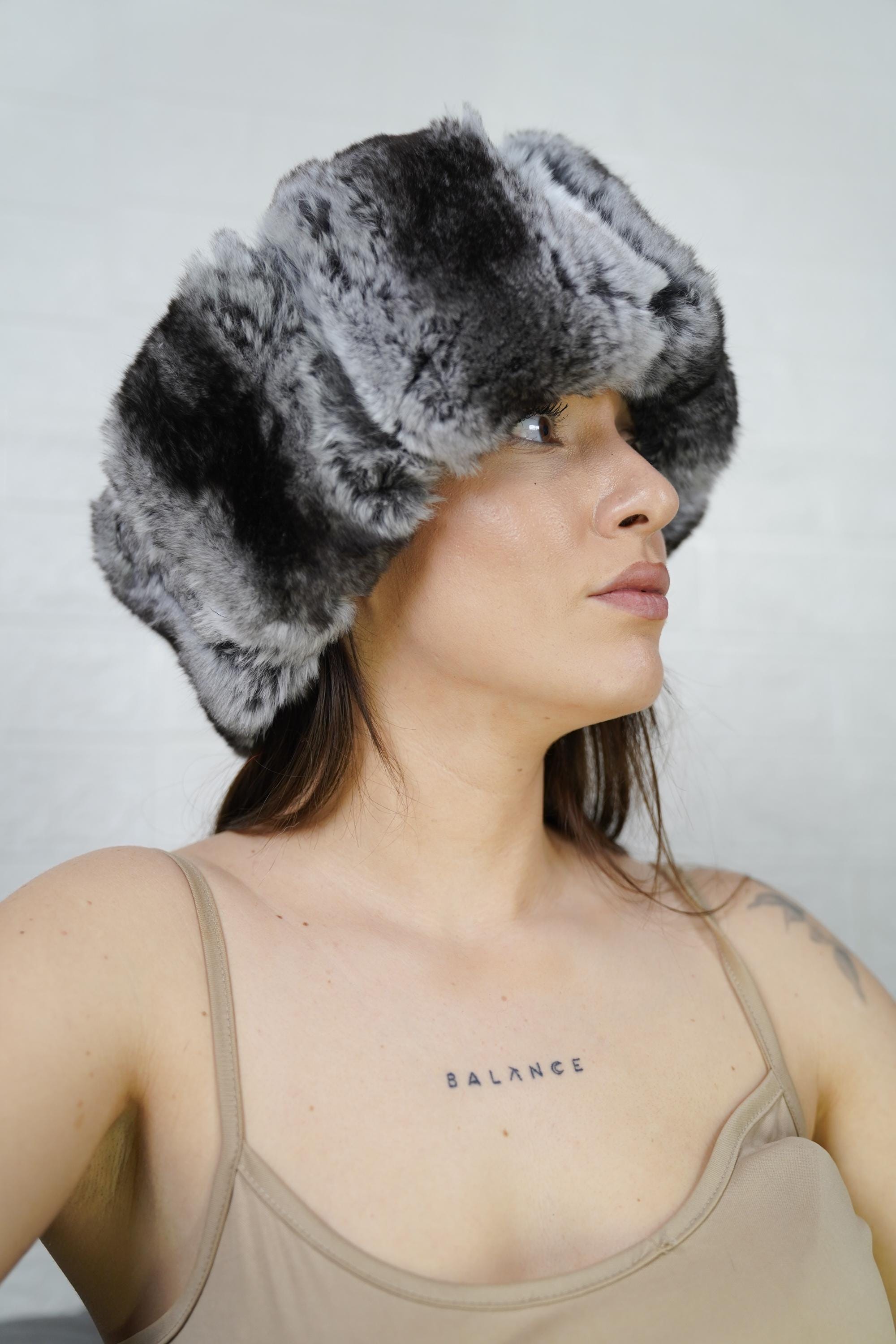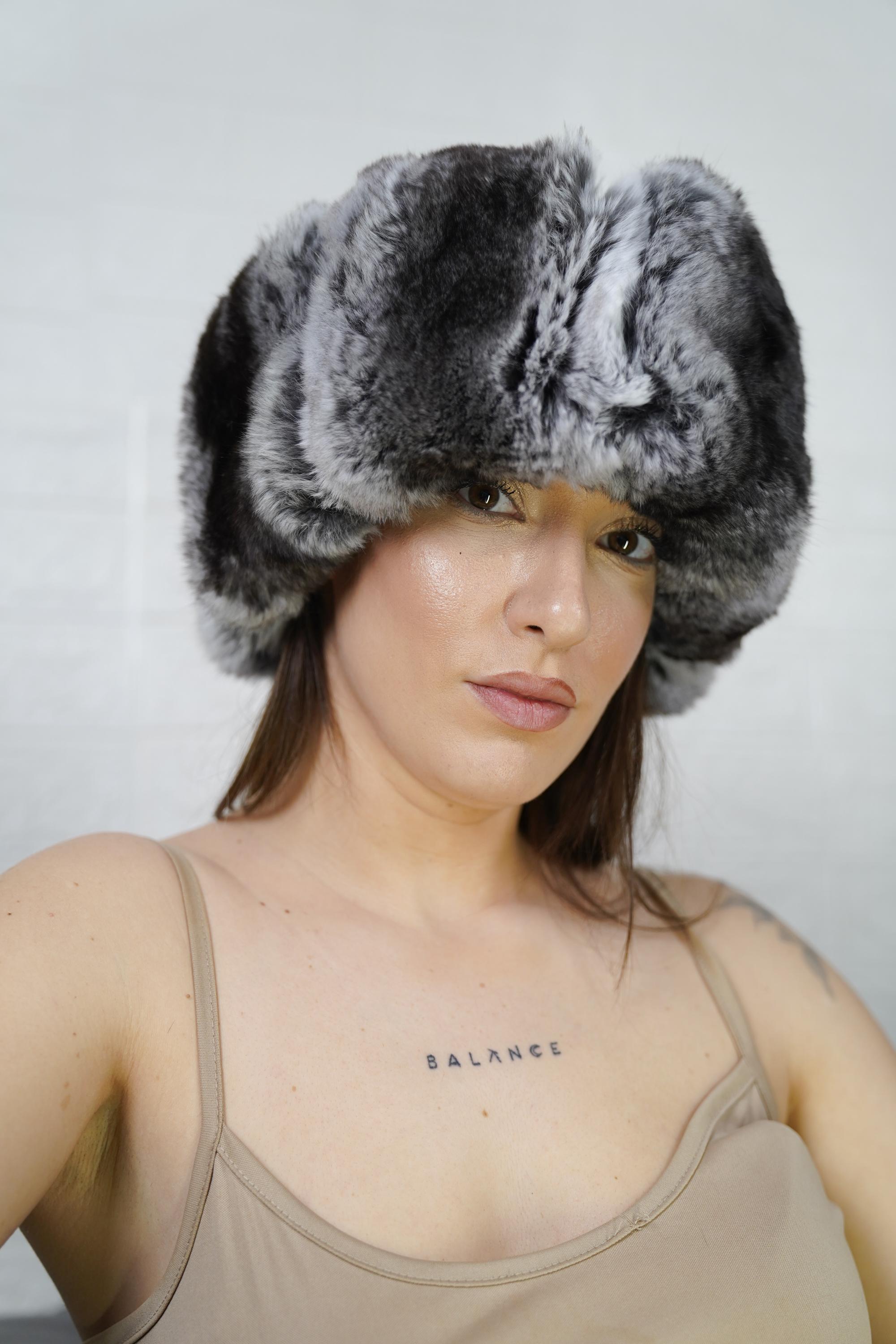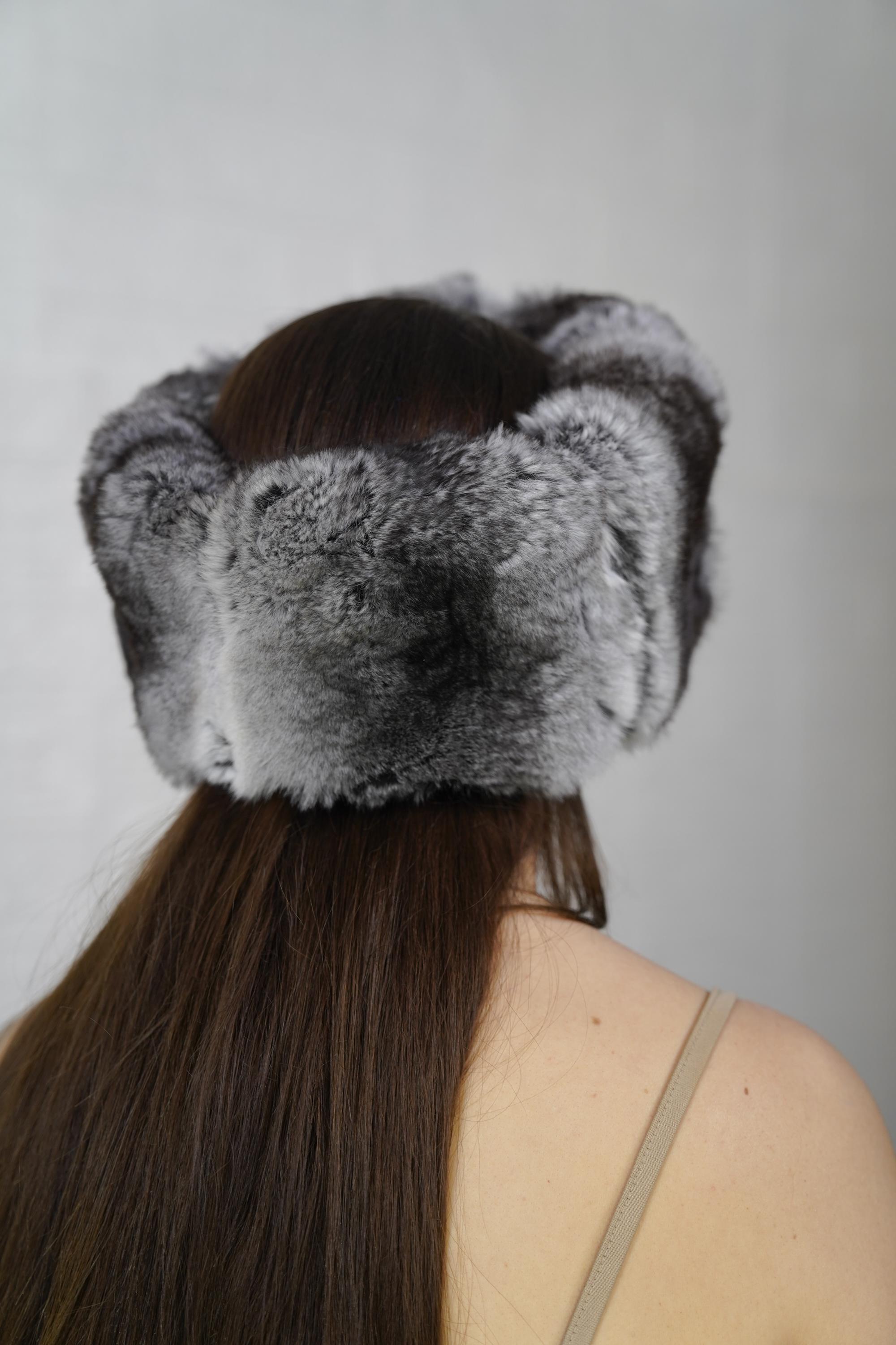 Add luxury, warmth, and unique style to your winter look. Order your chinchilla print rex rabbit fur headband full skin today. ✨