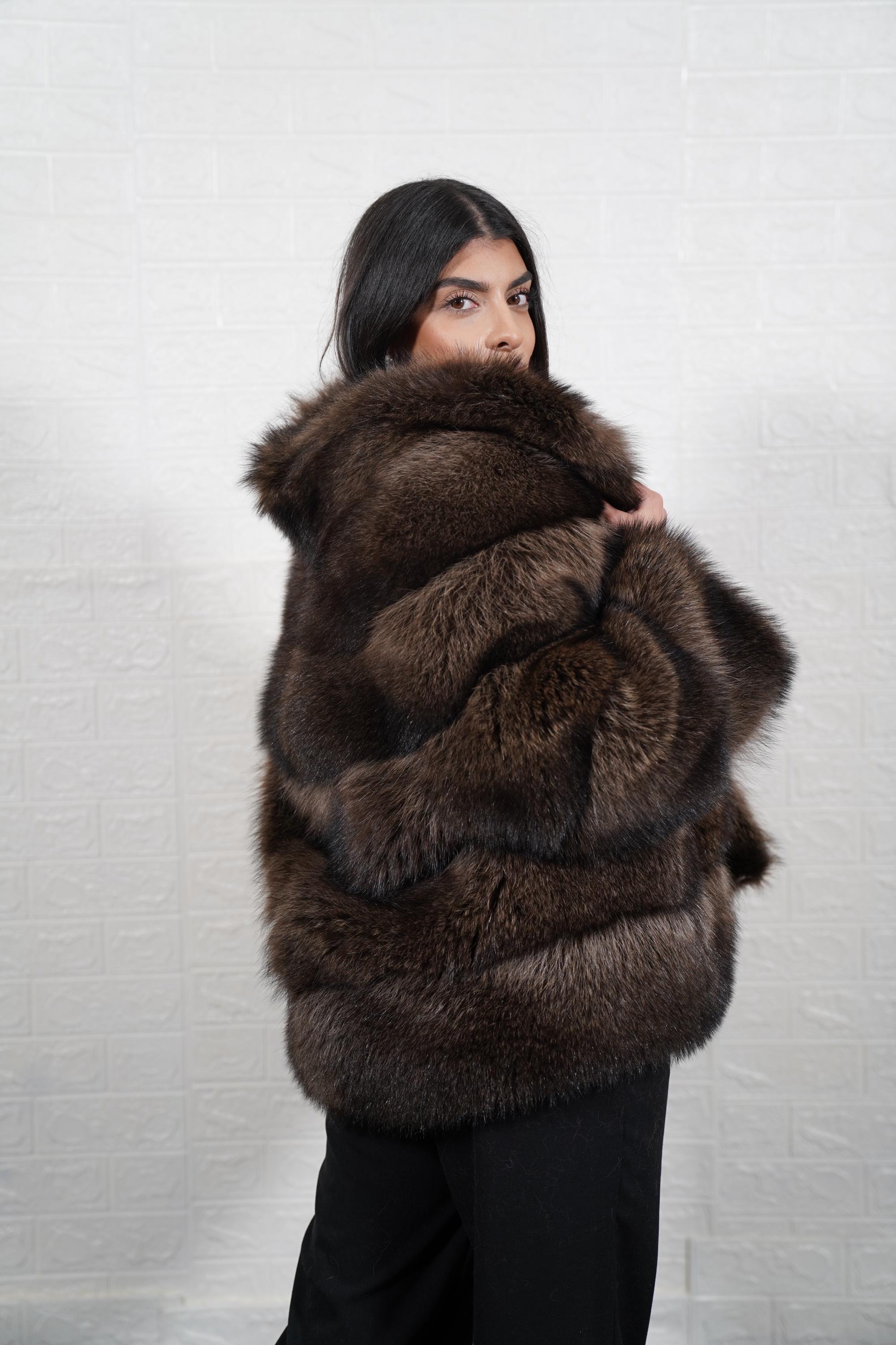 Add luxury, warmth, and timeless style to your winter wardrobe. Order your brown fin raccoon fur jacket coat today and enjoy free worldwide shipping!