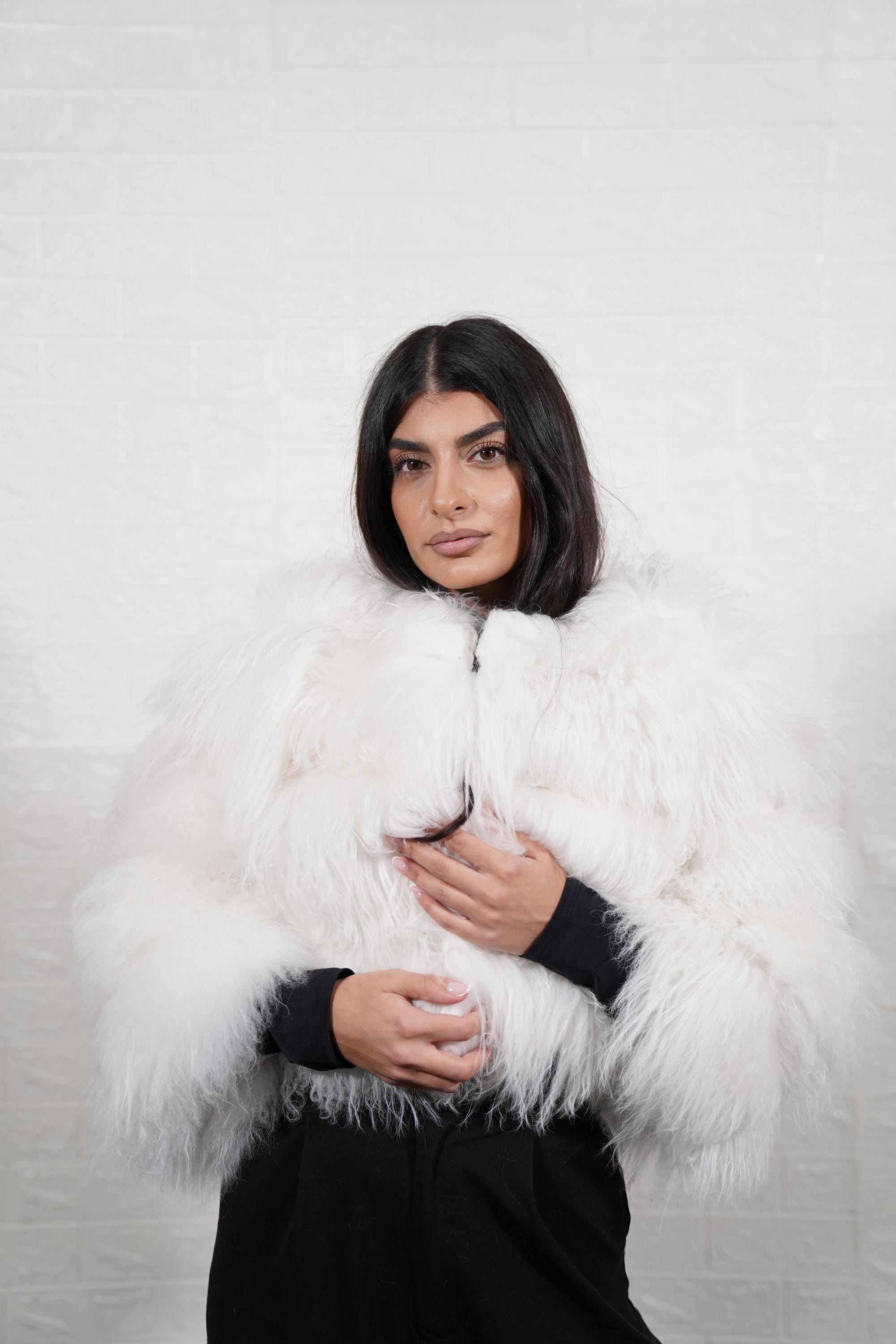 Alpaca fur jacket white cropped bomber. Leather lines. Pure attitude. Yours today. π€π¦