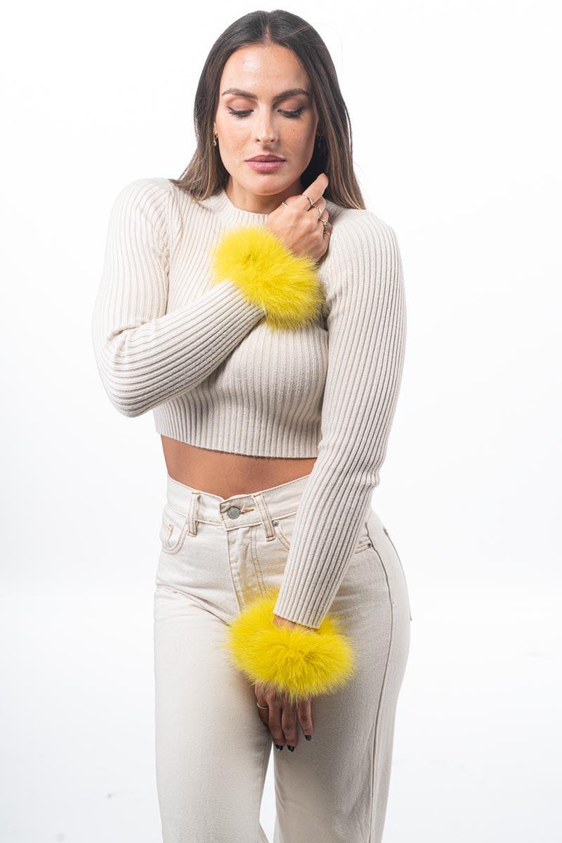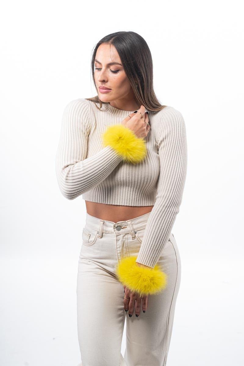 An accessory to improve your style, our Authentic Yellow Fox Fur Cuffs is the light in your