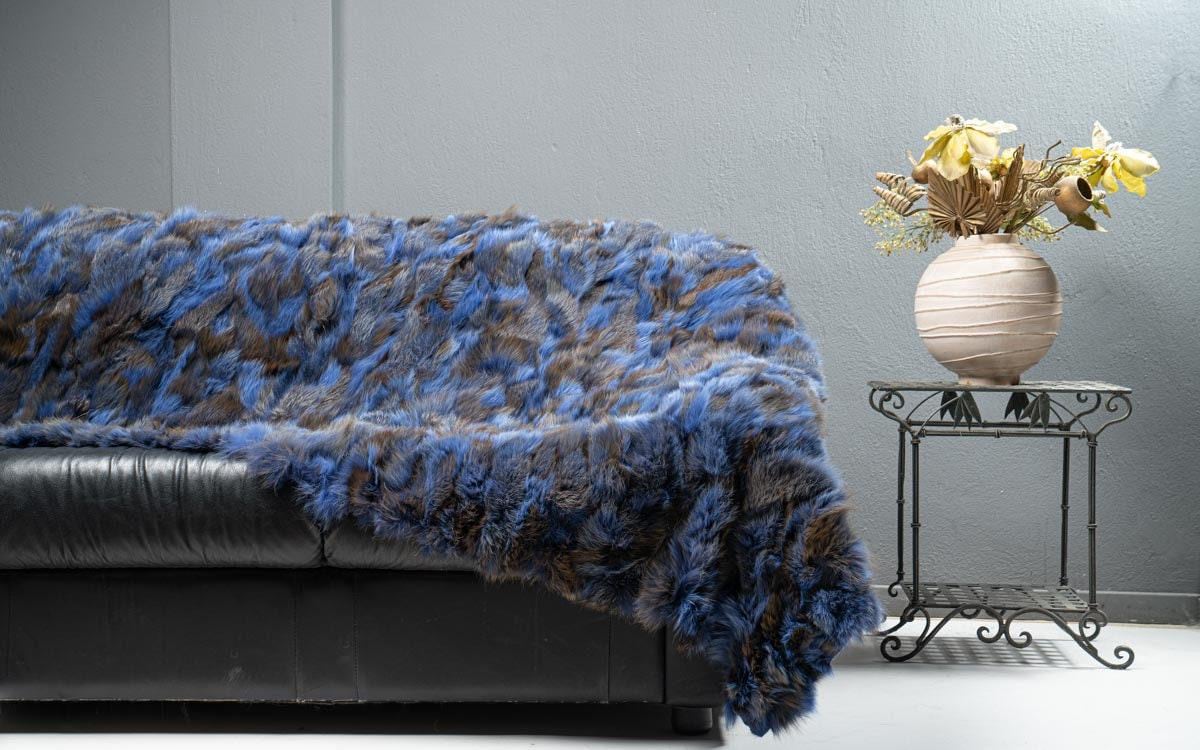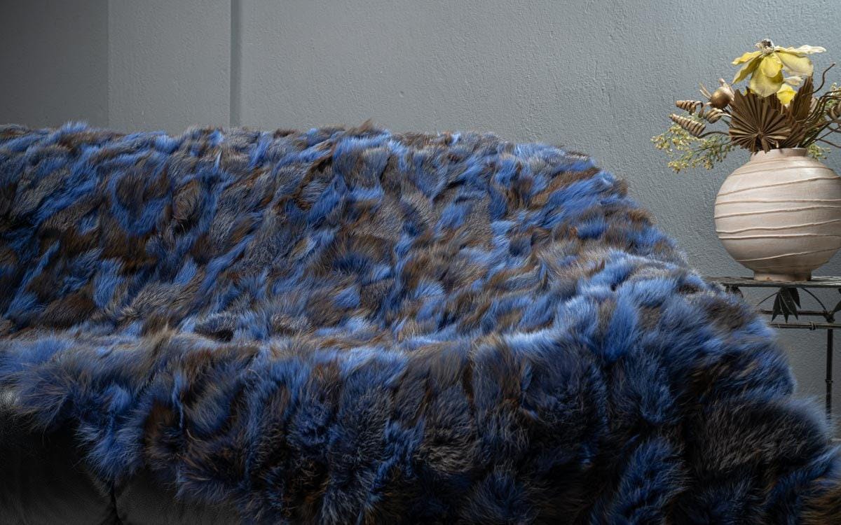 Create an opulent-looking space with our Genuine Fox Fur Blanket In Blue Colour.