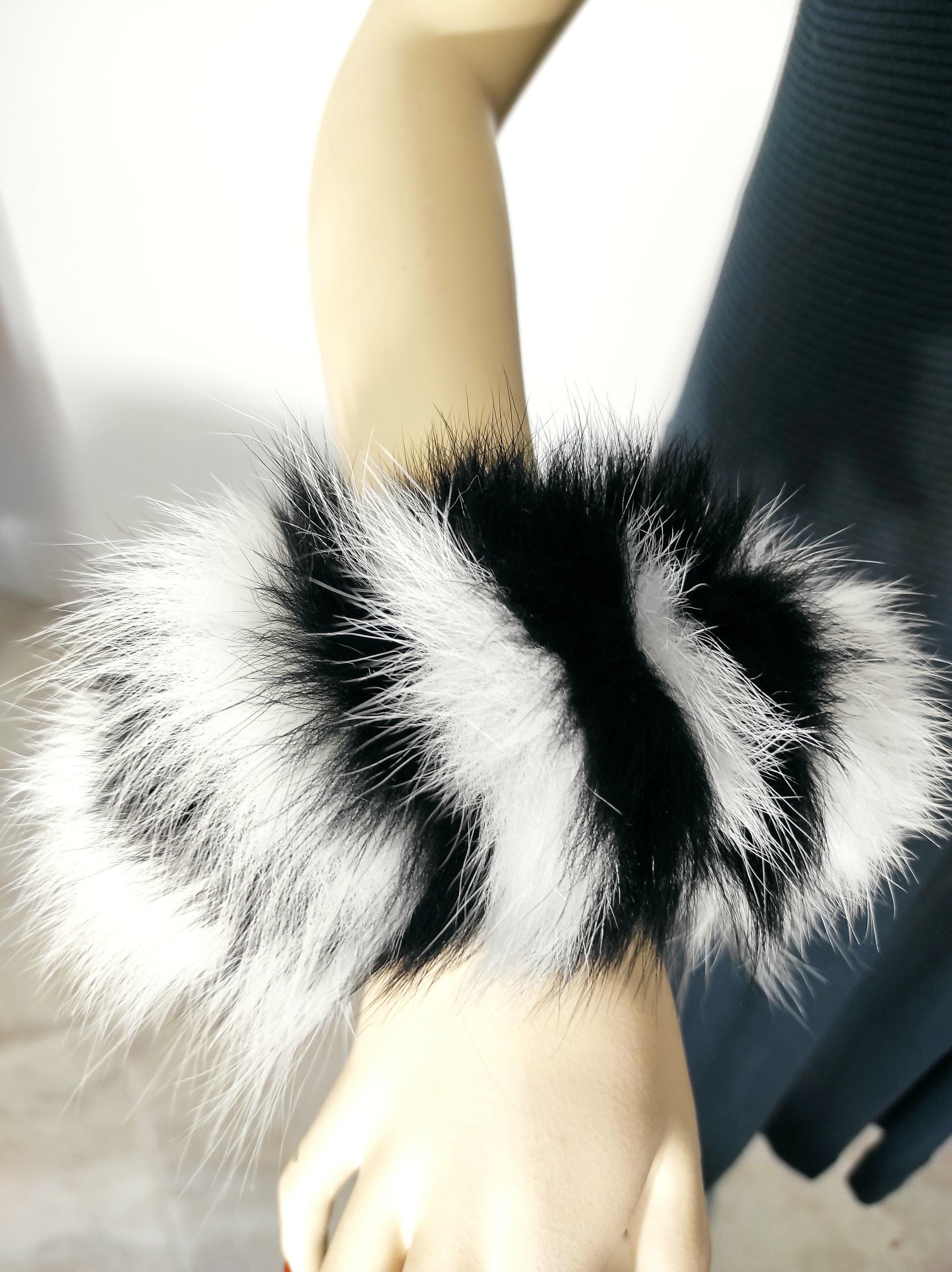 An accessory to improve your style, our Authentic Black White Fox Fur Cuffs is the light in your