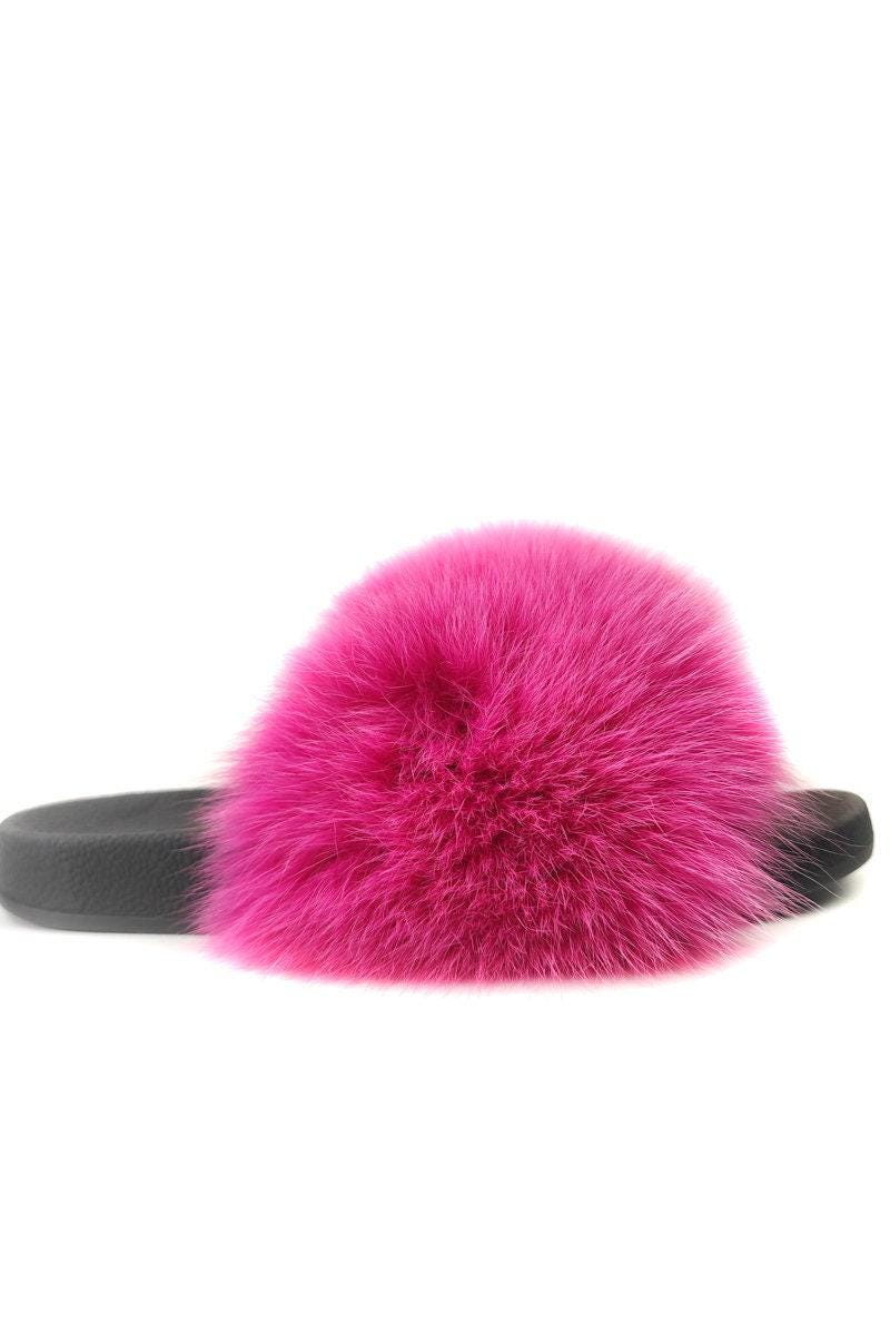 These super soft fur slides are made of real fox fur! It is in the color Pink . We dyed the fur and