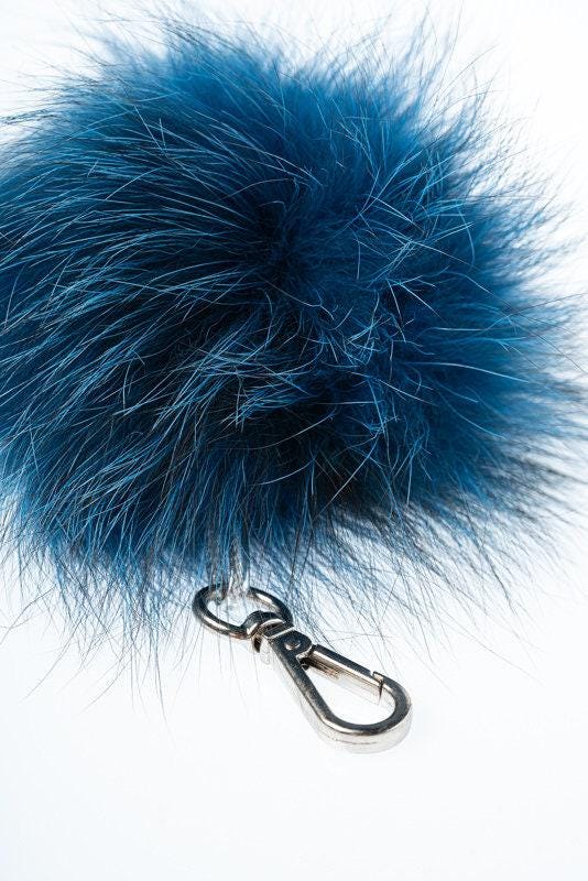 [1x Blue Real Fox Fur Pom Pom Keychain]