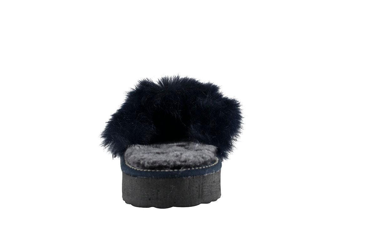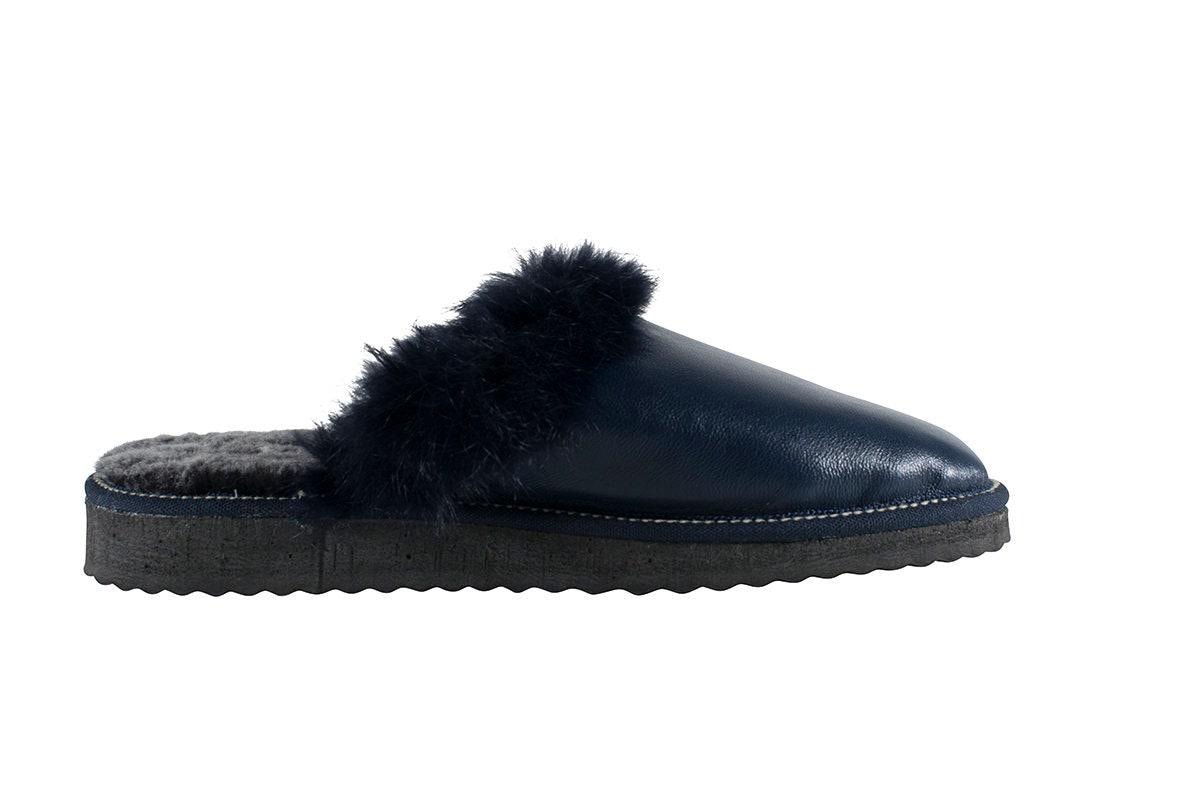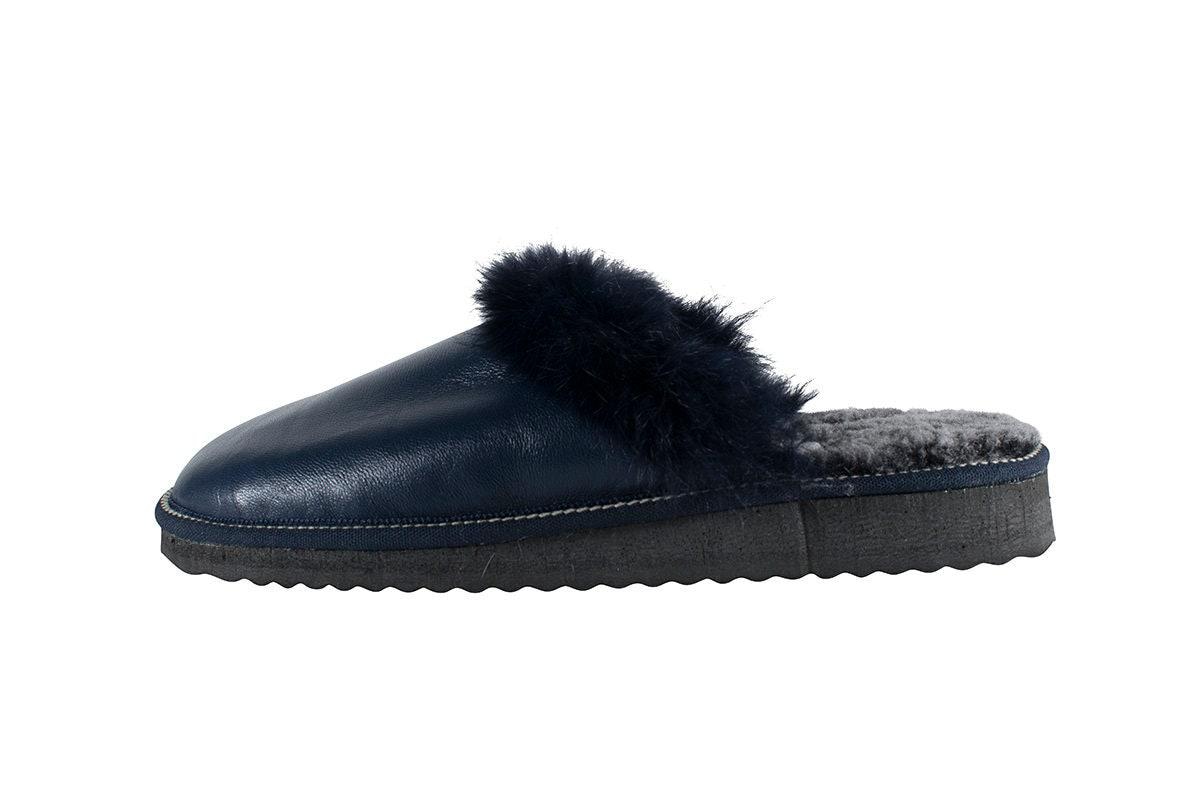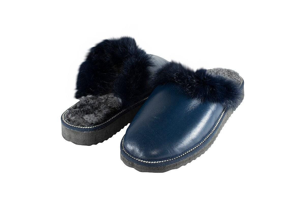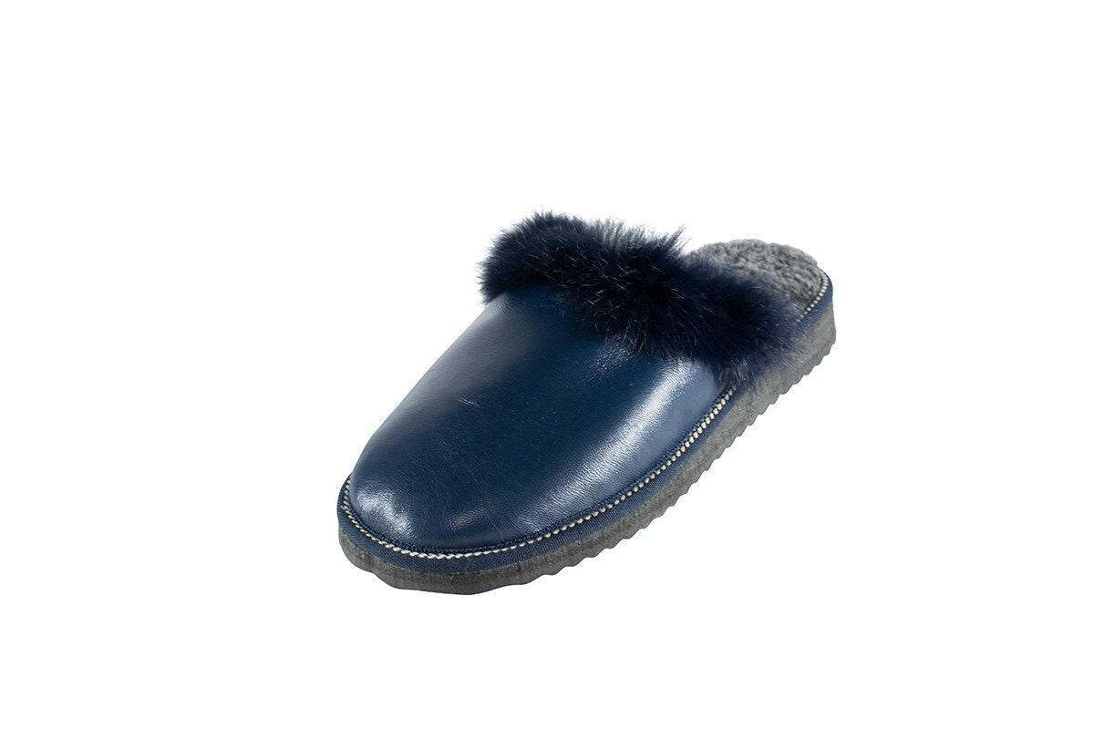 Fur Sheepskin Leather Slippers Blue for Women • Cozy Warm House Wool Slippers • Handmade genuine leather slippers