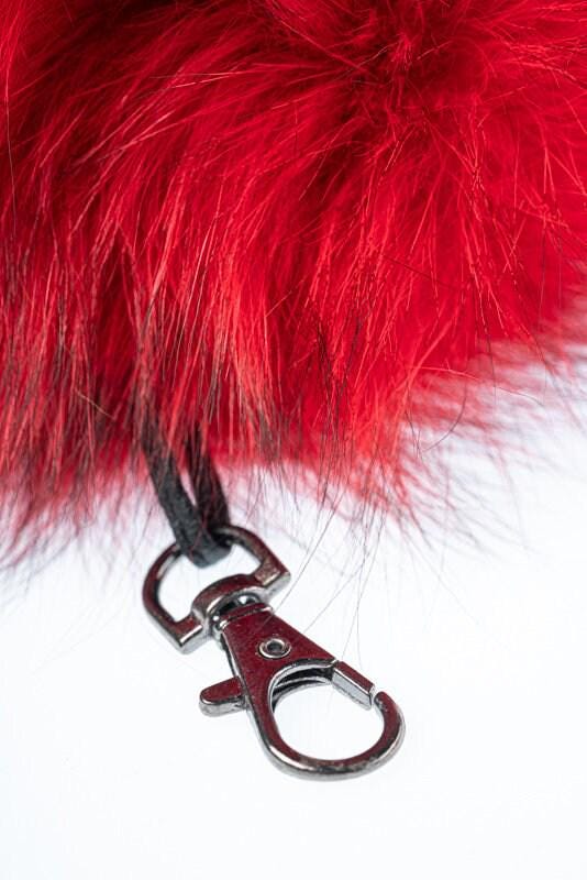 [1x Red Real Fox Fur Pom Pom Keychain]