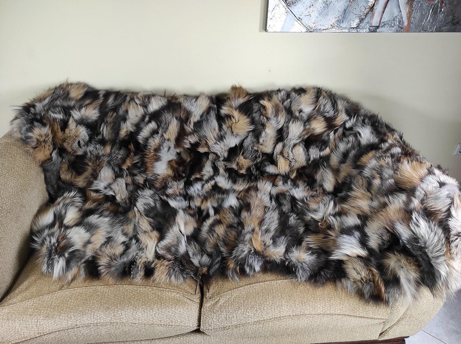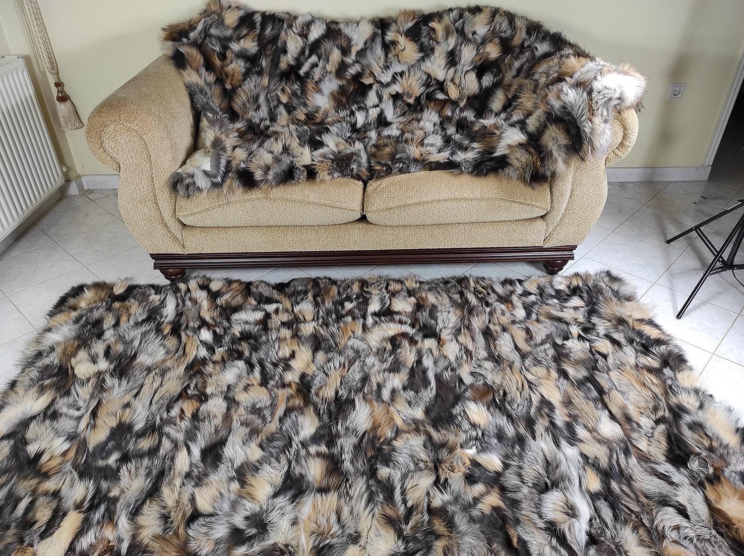 Handmade Real Fox Fur Blanket that can be used as a throw as well. Perfect for Bedspread or Sofa Cover.