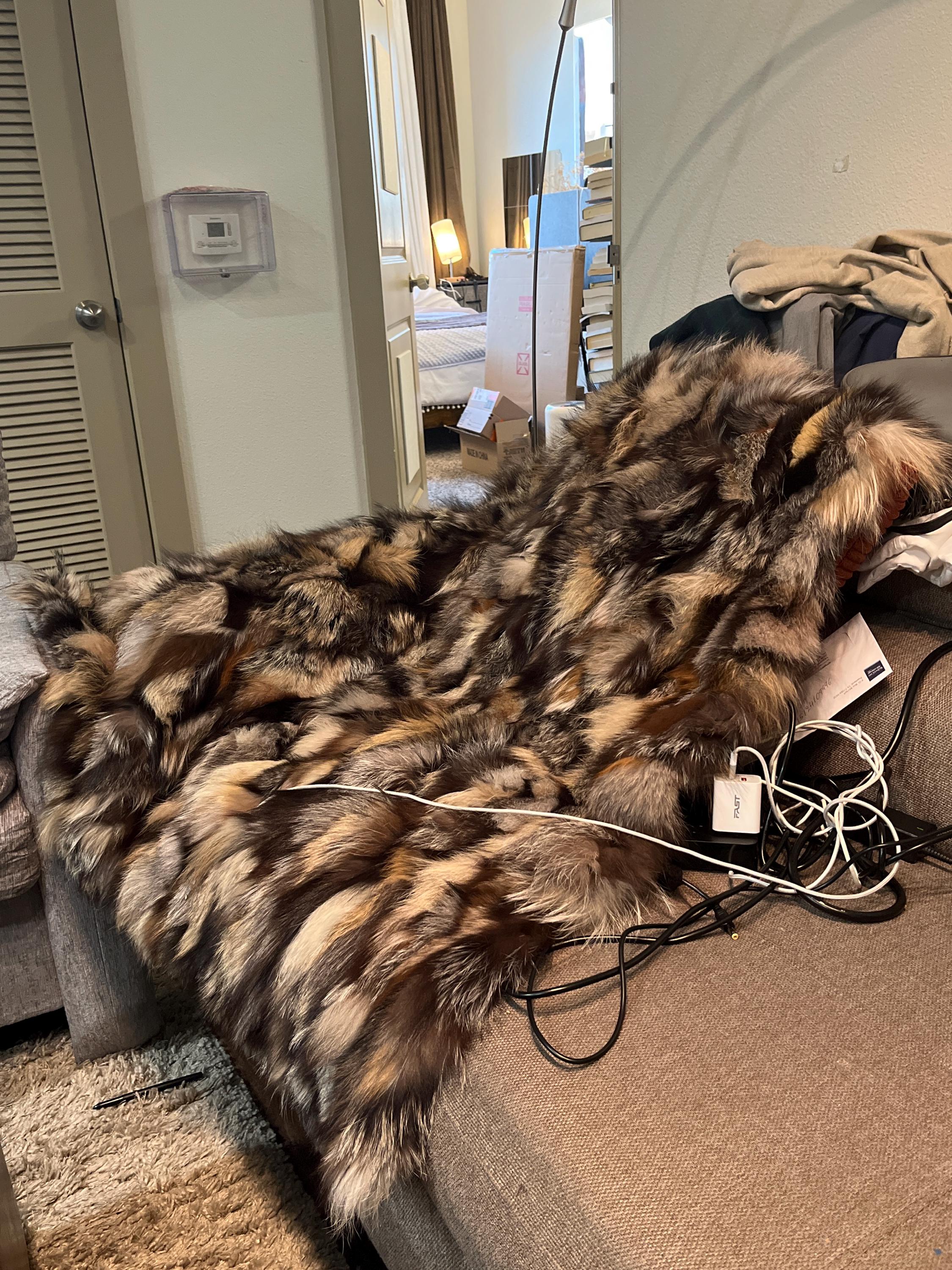 ● 1x Genuine Fox Fur Blanket In Natural Color